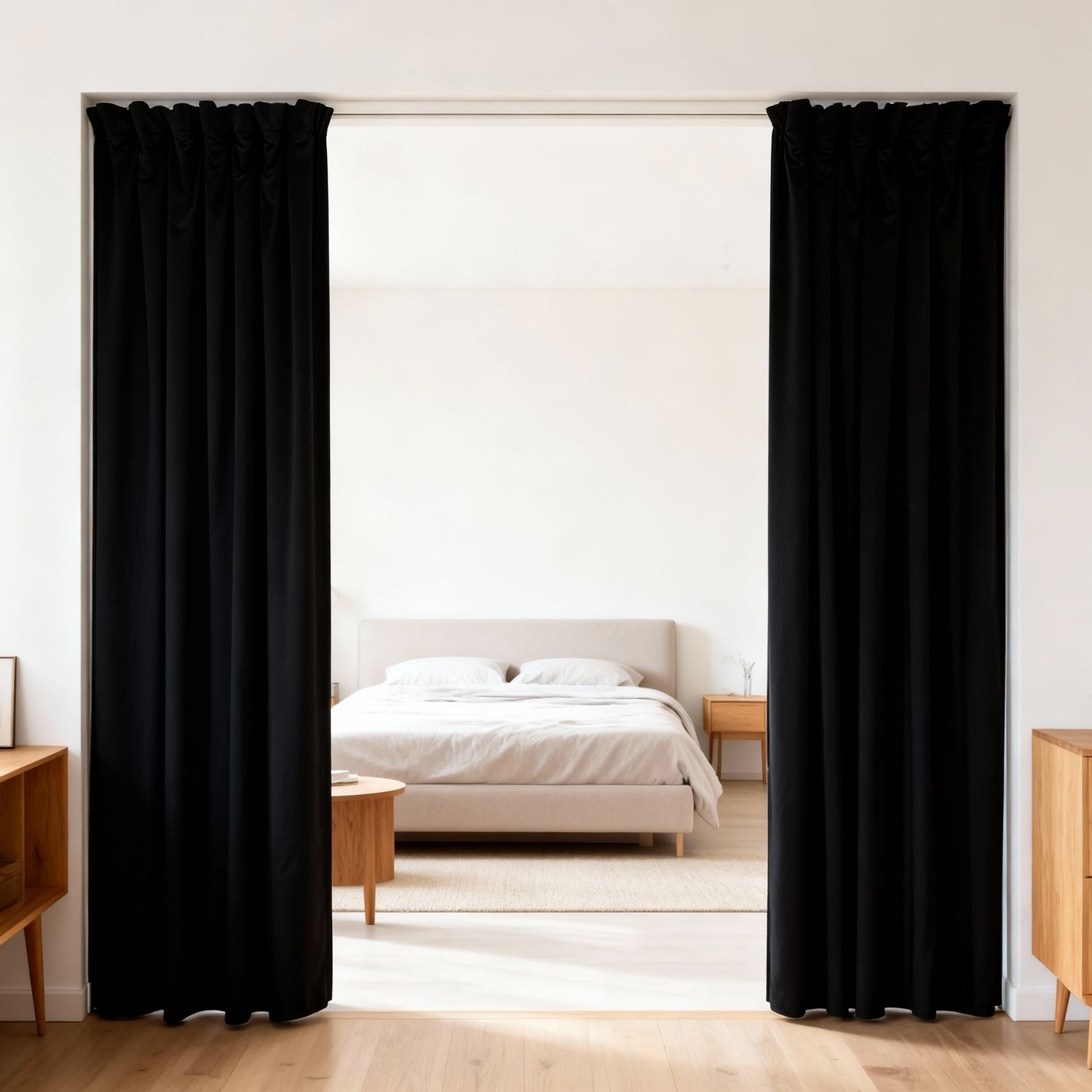 För miljöer där både ljud och ljus behöver kontrolleras finns Silent Divider Feltra med ett insytt mörkläggningslager. Det täta mörkläggningstyget blockerar ljus till 0 lux och ger en robustare struktur som ytterligare förstärker avdelarens ljudabsorberande egenskaper. Divider Feltra fungerar därför utmärkt även framför fönster, innerdörrar eller ytterdörrar där både insyn, ljus och ljud behöver hanteras samtidigt.