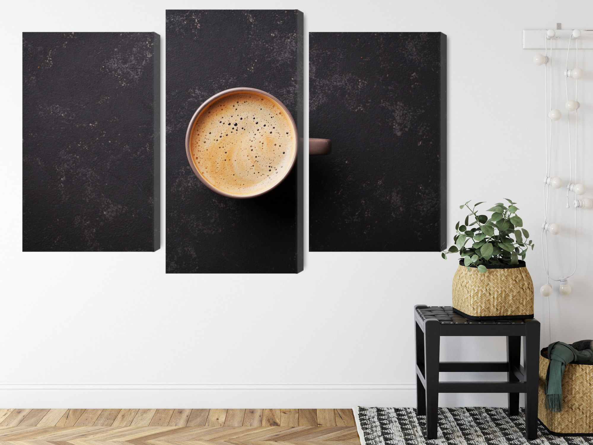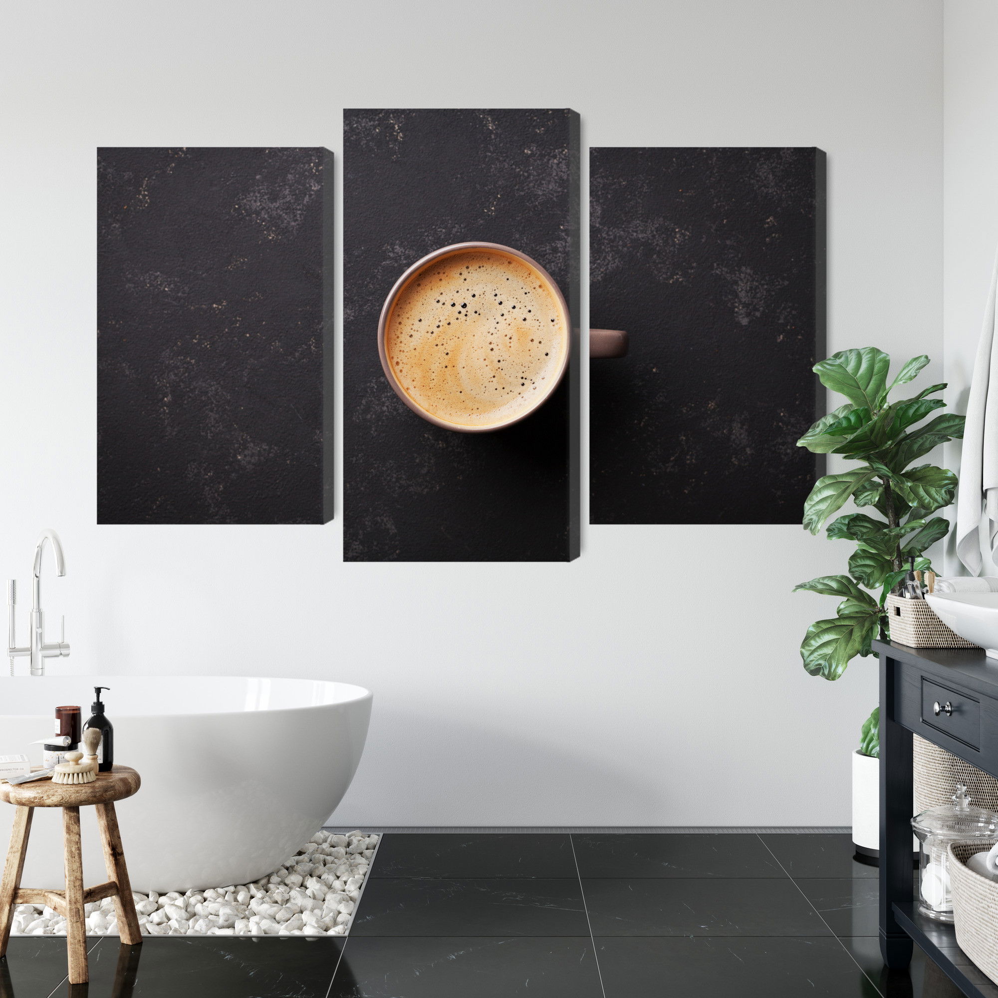 Motivet A cup of fresh coffee återges med hög färgprecision och detaljrikedom tack vare HP Latex-teknologi. Trycket sker med vattenbaserade, luktfria och GREENGUARD Gold-certifierade bläck som ger en upplösning på upp till 300 DPI. Färgerna är UV-beständiga och behåller sin styrka även i ljusa rum, vilket gör tavlan lämplig för både hem- och offentliga miljöer.