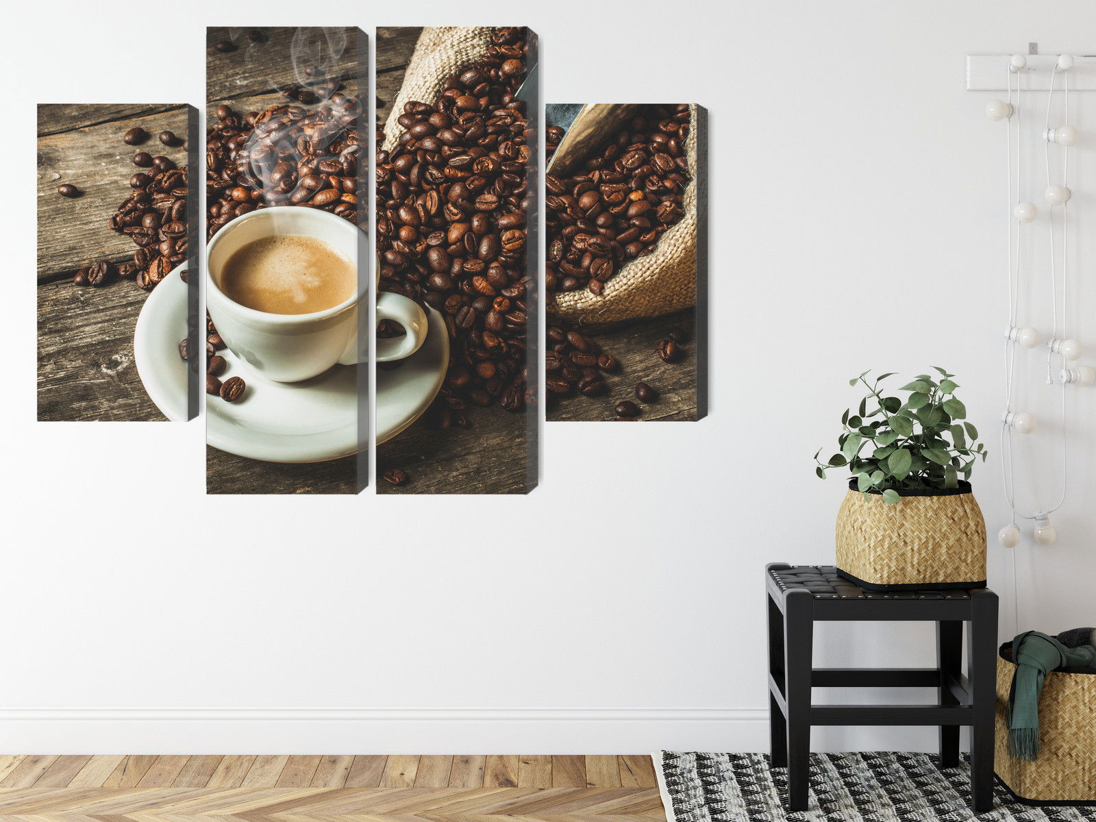 Motivet A cup of hot coffee återges med hög färgprecision och detaljrikedom tack vare HP Latex-teknologi. Trycket sker med vattenbaserade, luktfria och GREENGUARD Gold-certifierade bläck som ger en upplösning på upp till 300 DPI. Färgerna är UV-beständiga och behåller sin styrka även i ljusa rum, vilket gör tavlan lämplig för både hem- och offentliga miljöer.