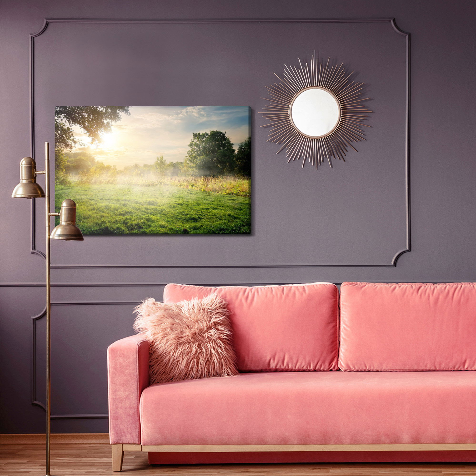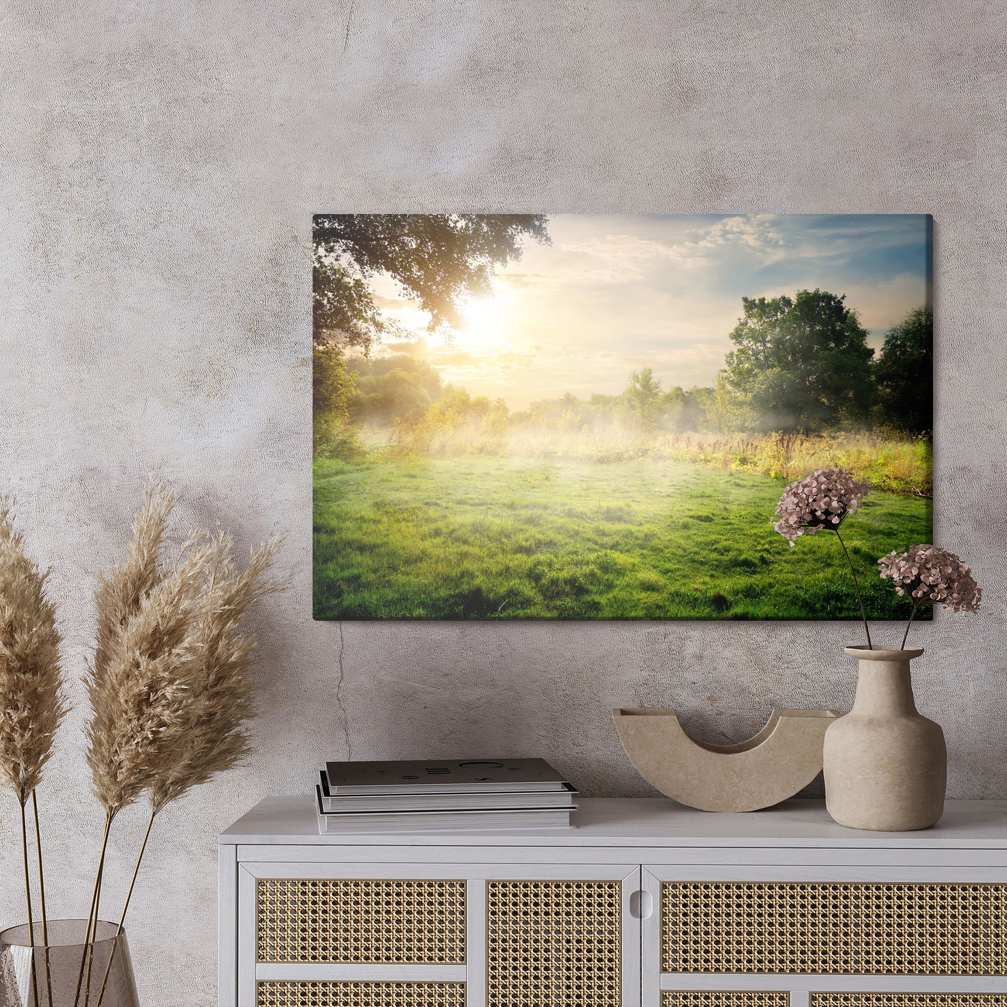 Placera tavlan där du upplever mycket eko eller hög ljudnivå, till exempel i öppna planlösningar, hemmakontor eller sociala ytor. Motiv i denna kategori gör sig särskilt bra i rum där du vill skapa en genomtänkt och sammanhängande känsla. Landskap och naturmotiv tillför en organisk mjukhet där färger och former skapar ett harmoniskt intryck som fungerar i både ljusa och mer dämpade interiörer.