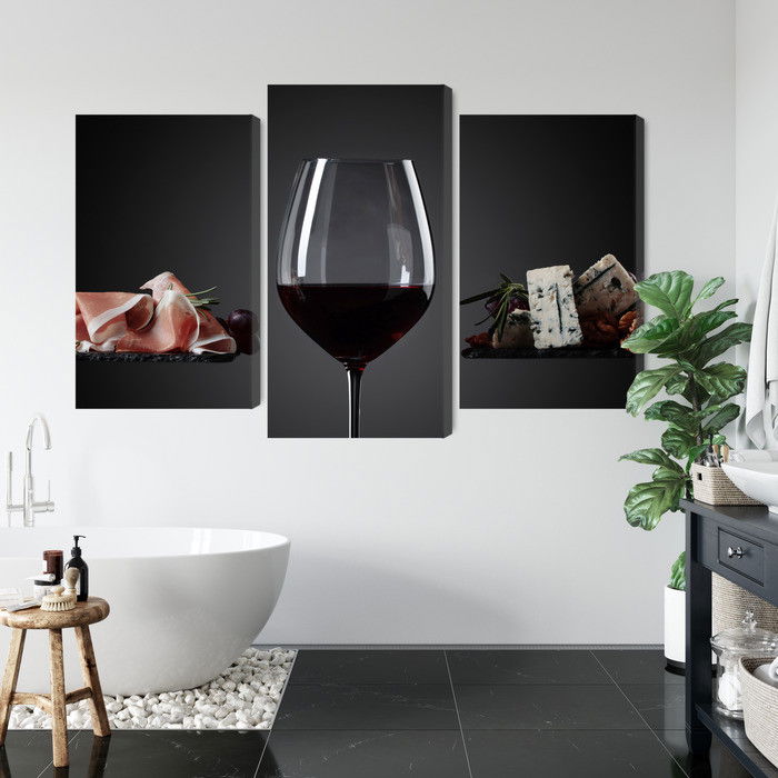Motivet A glass of red wine återges med hög färgprecision och detaljrikedom tack vare HP Latex-teknologi. Trycket sker med vattenbaserade, luktfria och GREENGUARD Gold-certifierade bläck som ger en upplösning på upp till 300 DPI. Färgerna är UV-beständiga och behåller sin styrka även i ljusa rum, vilket gör tavlan lämplig för både hem- och offentliga miljöer.