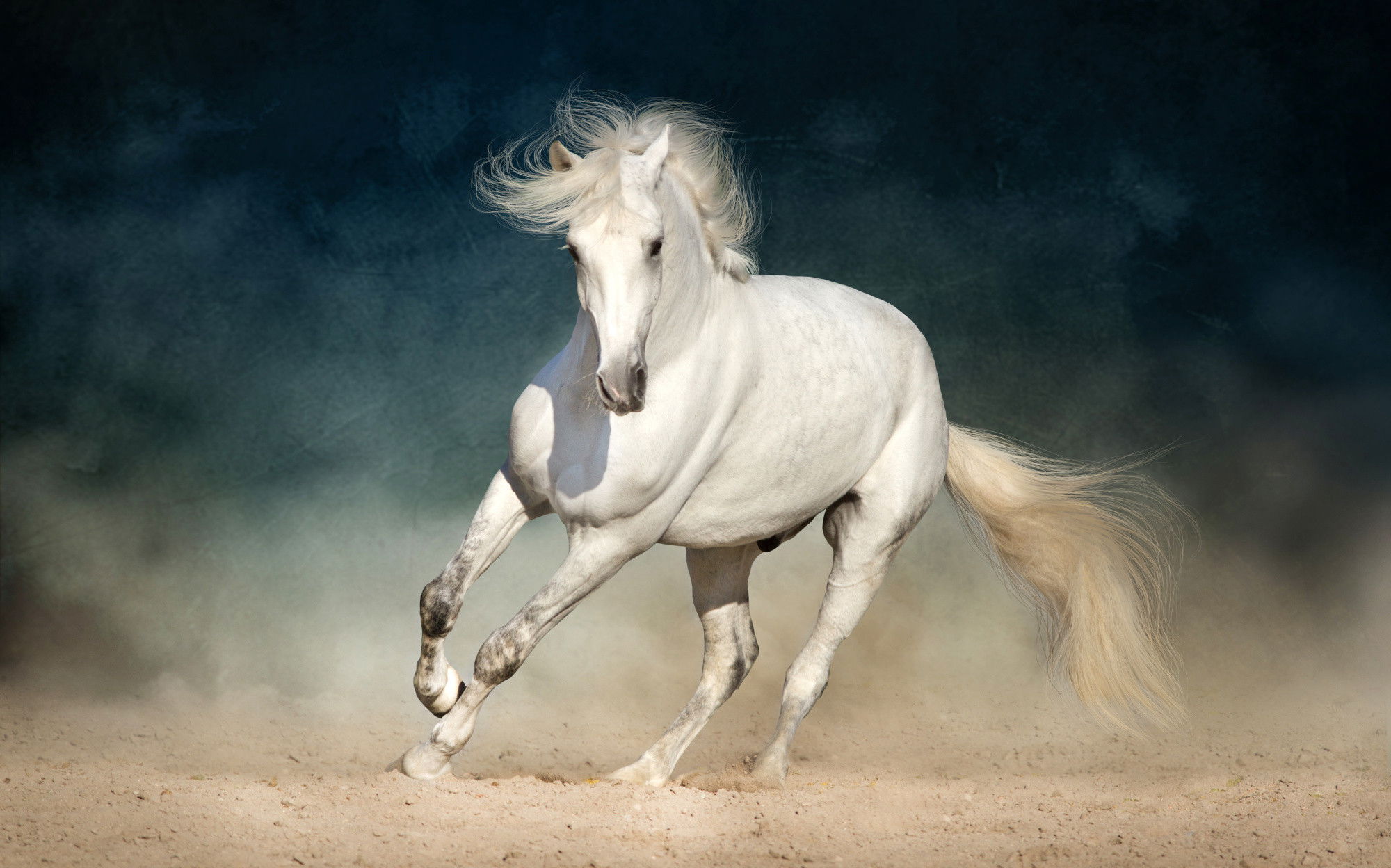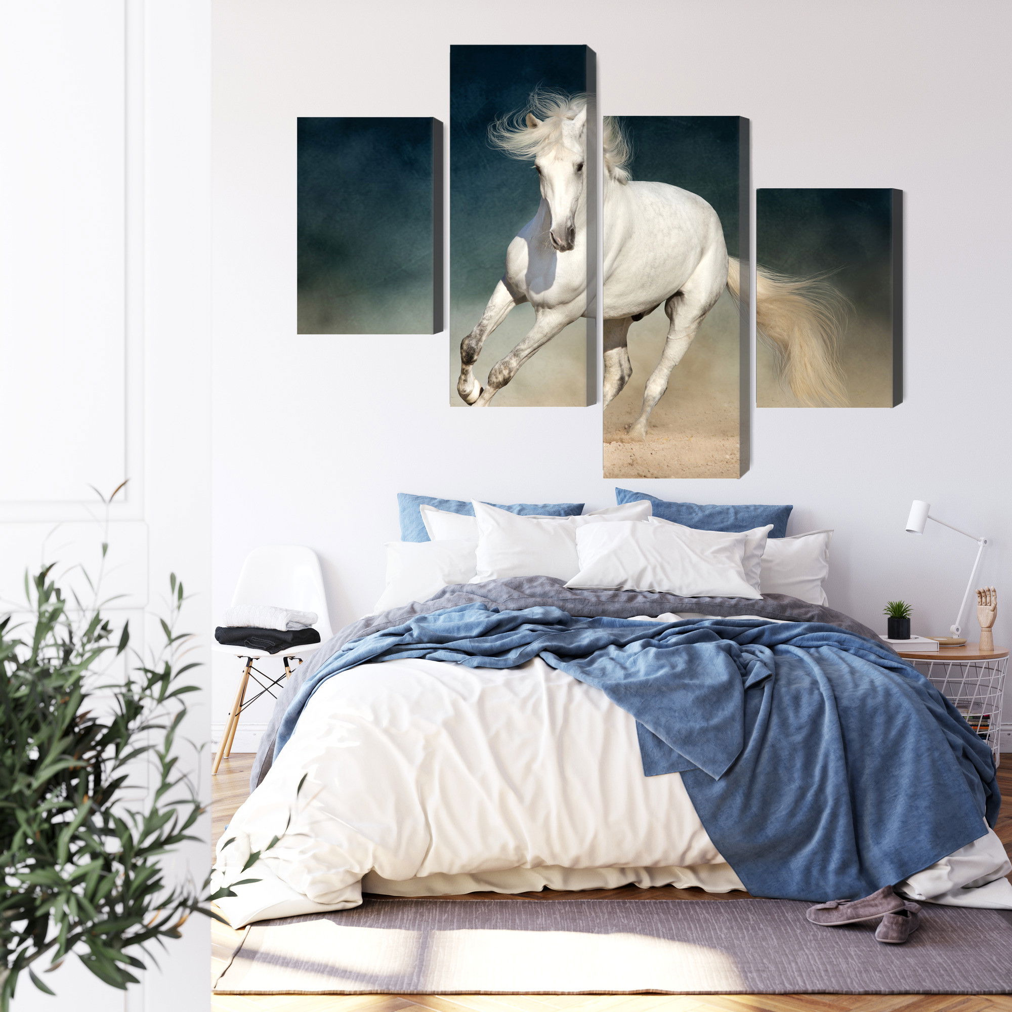 Ljuddämpande tavla – A white horse at a gallop för lugnare rum och mjukare akustik