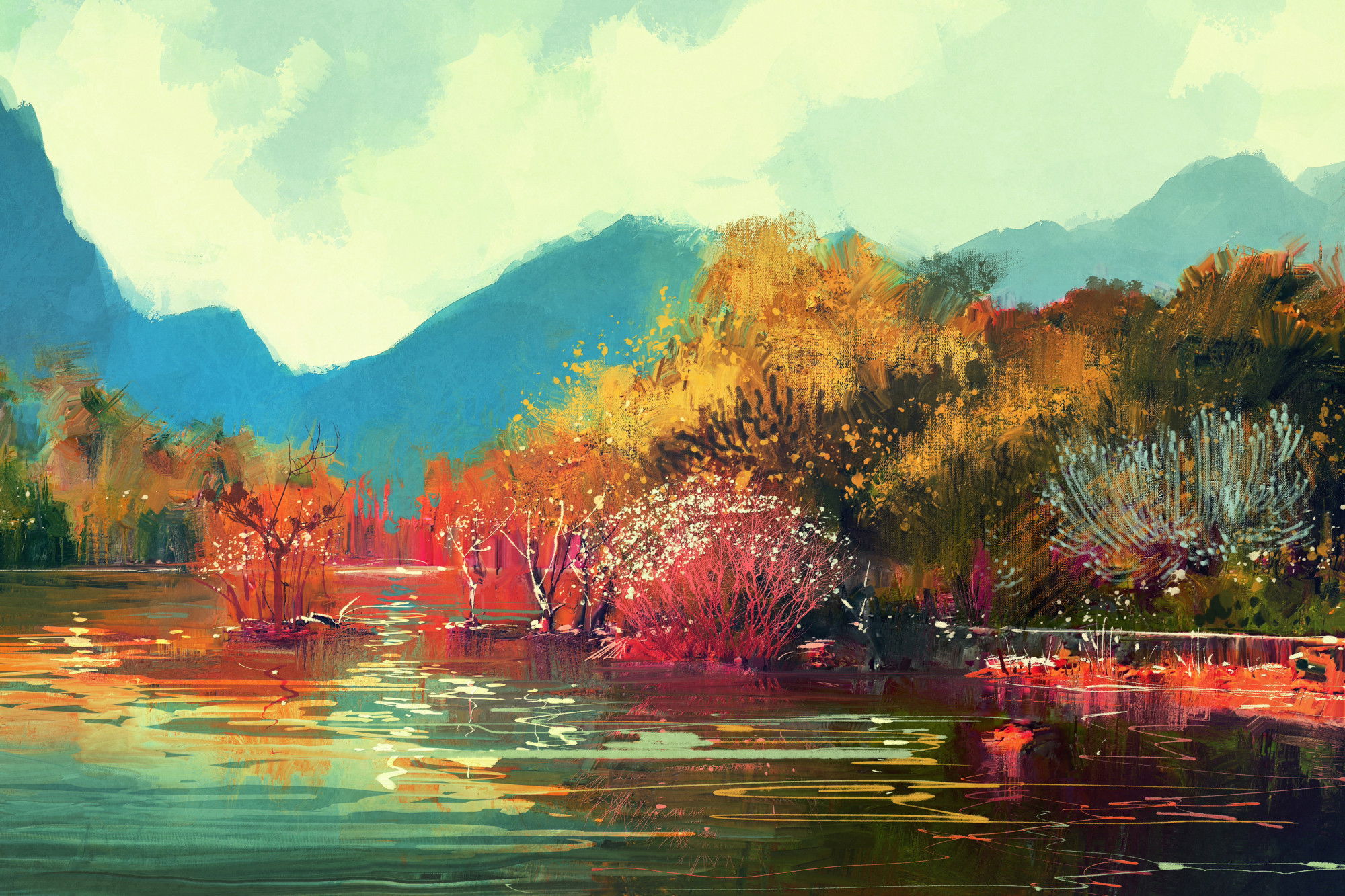 Ljuddämpande tavla – Autumn landscape as if för lugnare rum och mjukare akustik