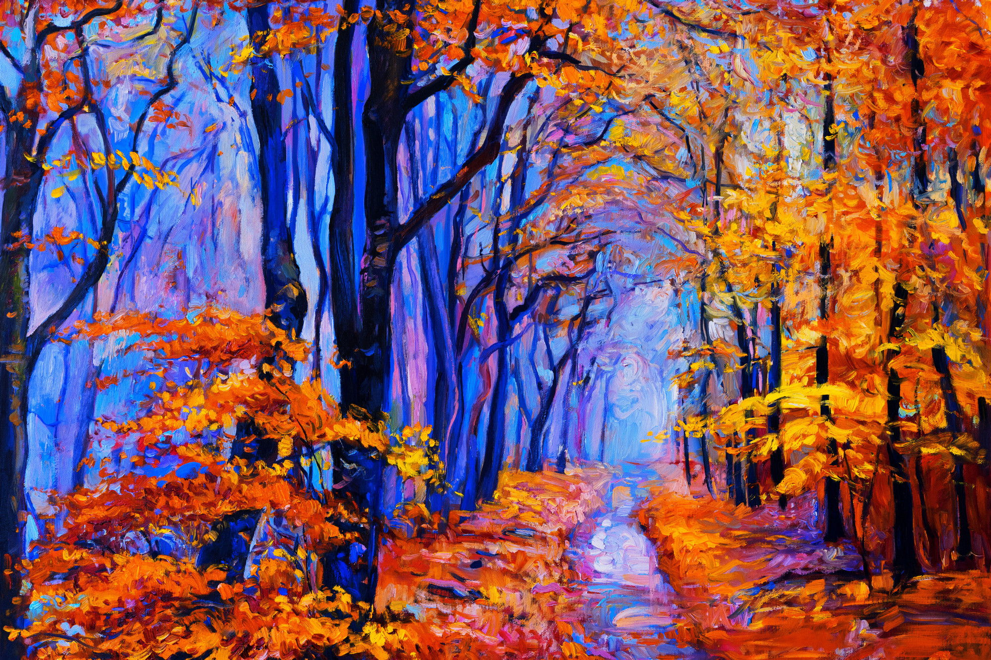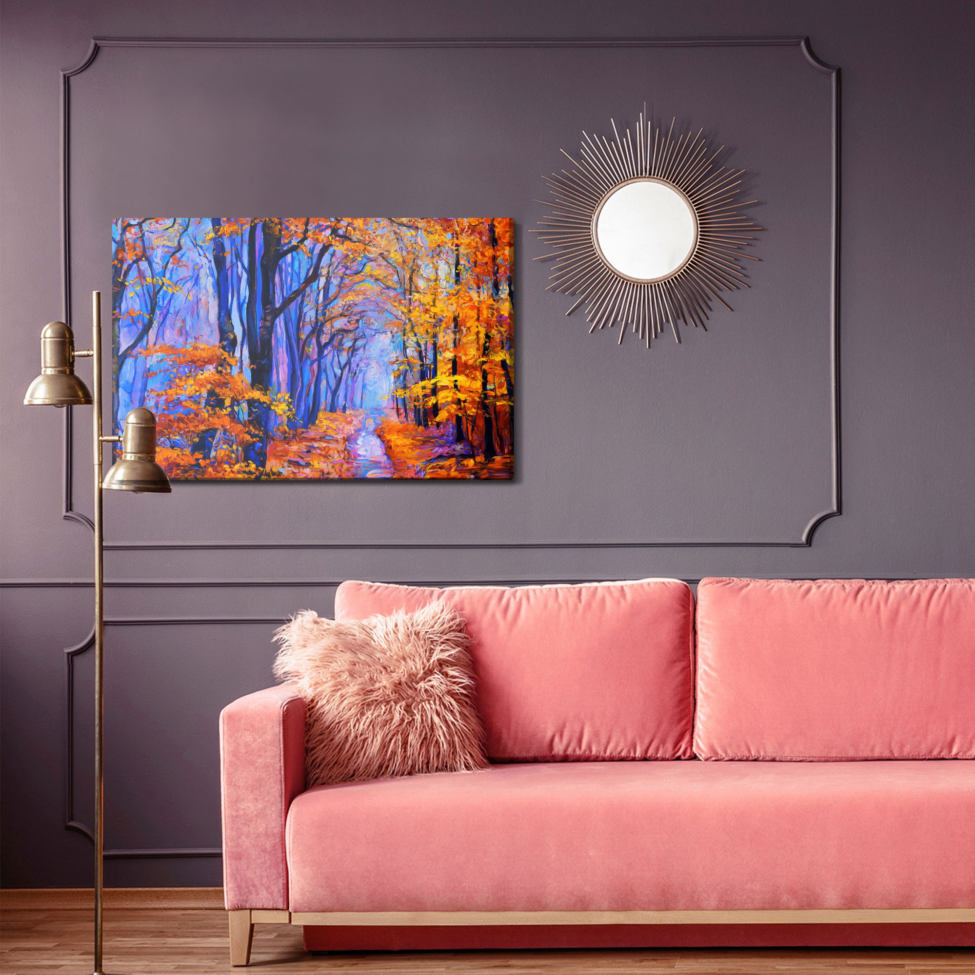 Ljuddämpande tavla – Blue-orange forest för lugnare rum och mjukare akustik