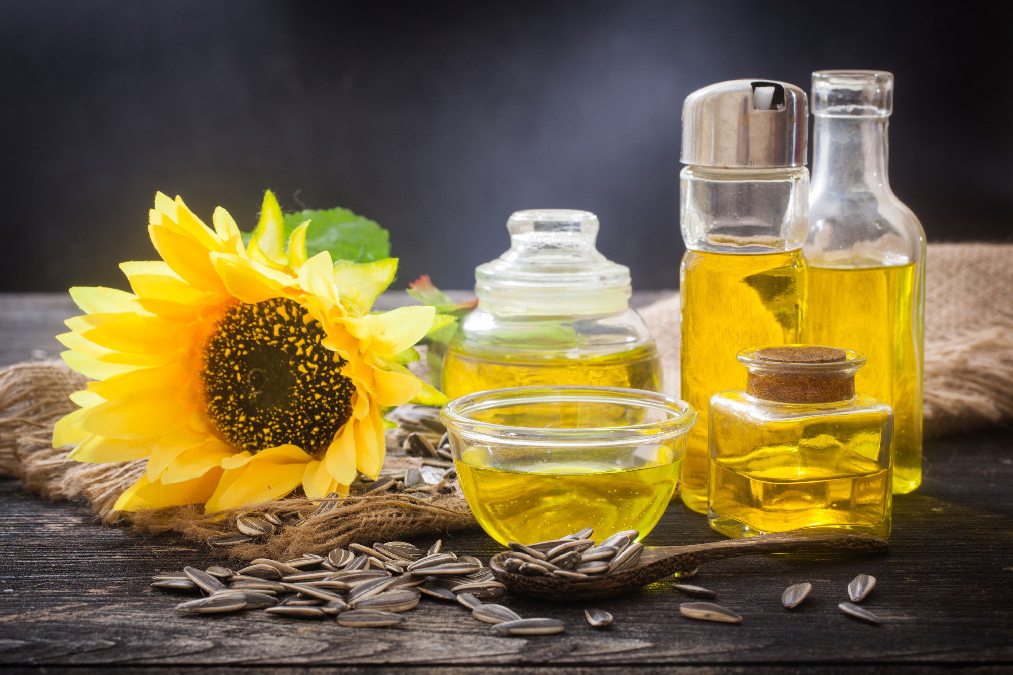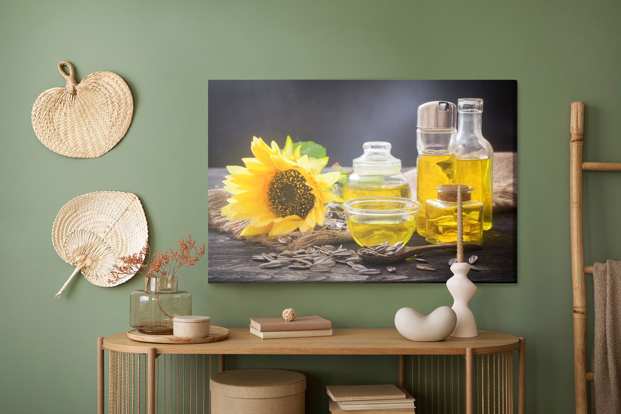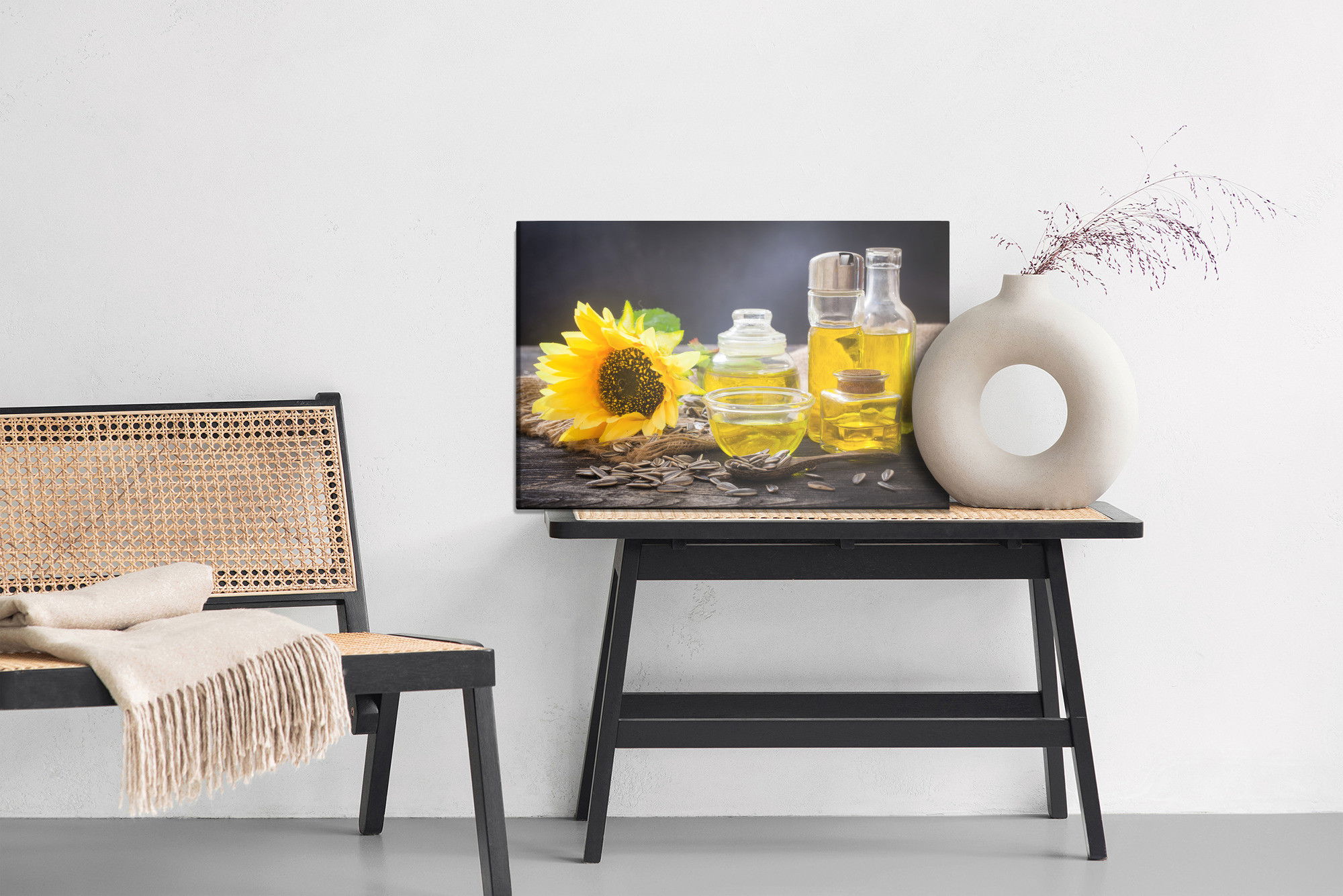 Ljuddämpande tavla – Bottles with sunflower oil för lugnare rum och mjukare akustik