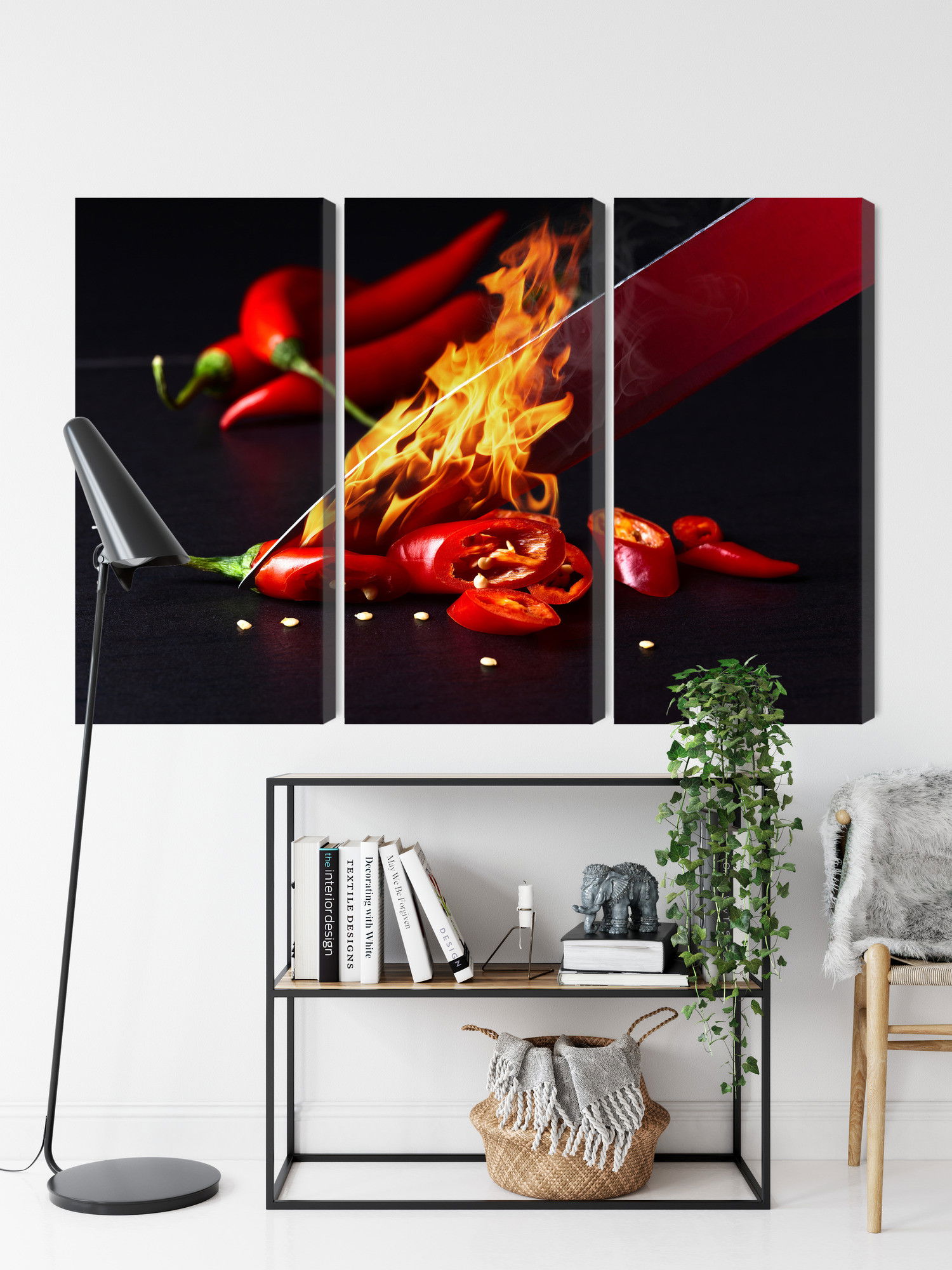 Motivet Burning knife återges med hög färgprecision och detaljrikedom tack vare HP Latex-teknologi. Trycket sker med vattenbaserade, luktfria och GREENGUARD Gold-certifierade bläck som ger en upplösning på upp till 300 DPI. Färgerna är UV-beständiga och behåller sin styrka även i ljusa rum, vilket gör tavlan lämplig för både hem- och offentliga miljöer.
