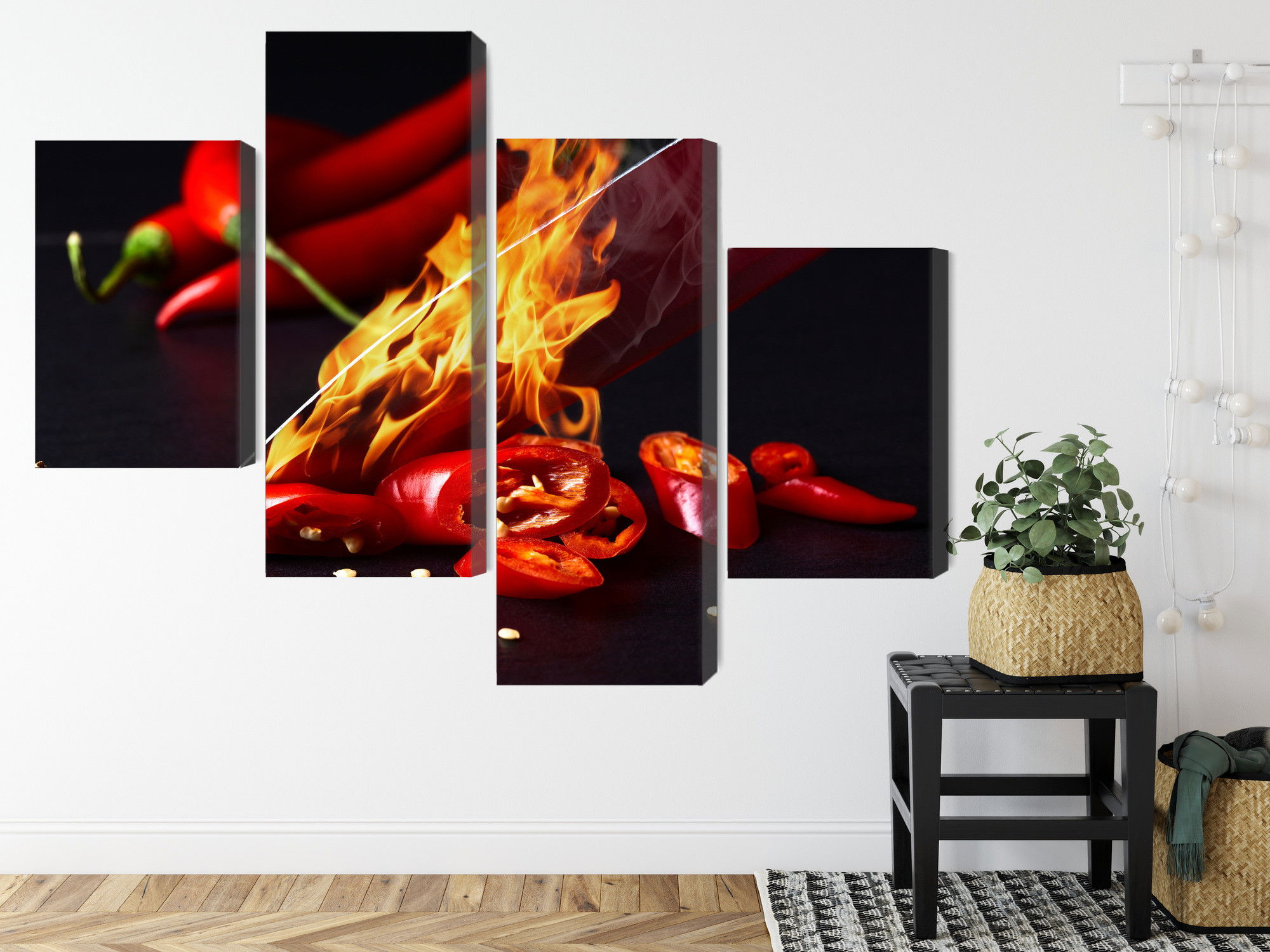 Motivet Burning knife återges med hög färgprecision och detaljrikedom tack vare HP Latex-teknologi. Trycket sker med vattenbaserade, luktfria och GREENGUARD Gold-certifierade bläck som ger en upplösning på upp till 300 DPI. Färgerna är UV-beständiga och behåller sin styrka även i ljusa rum, vilket gör tavlan lämplig för både hem- och offentliga miljöer.
