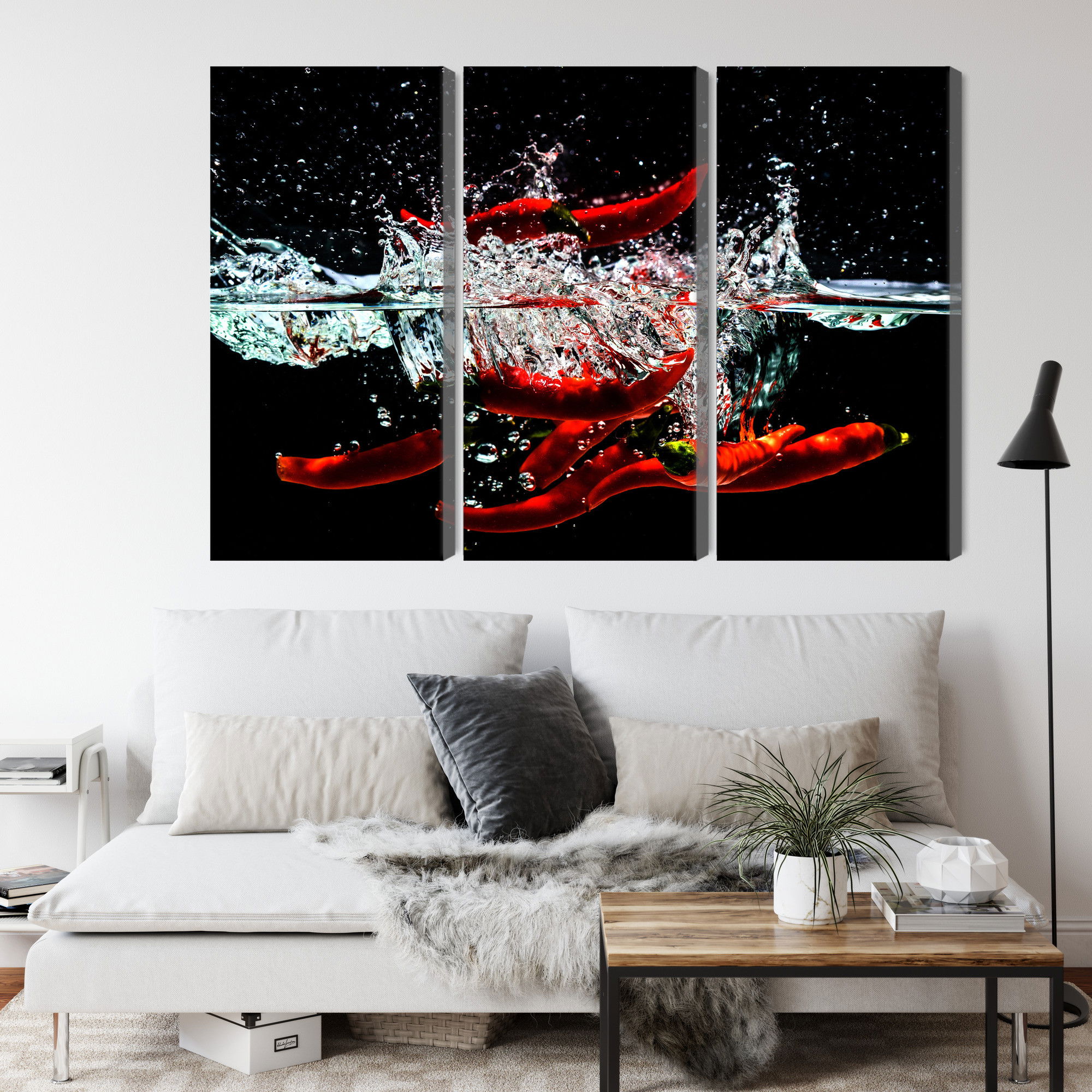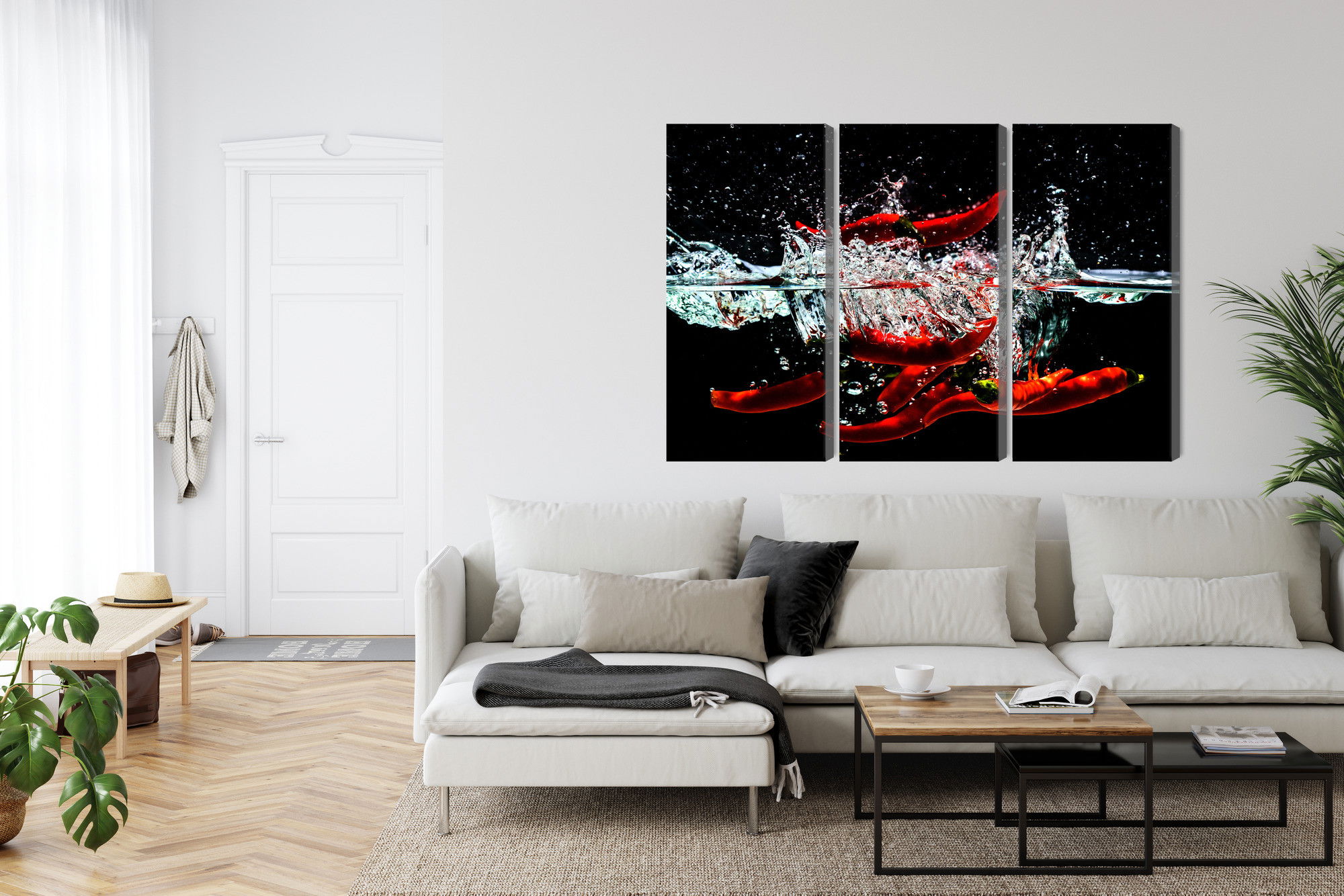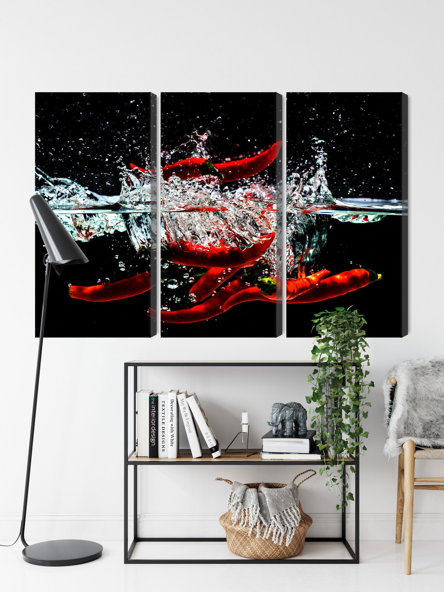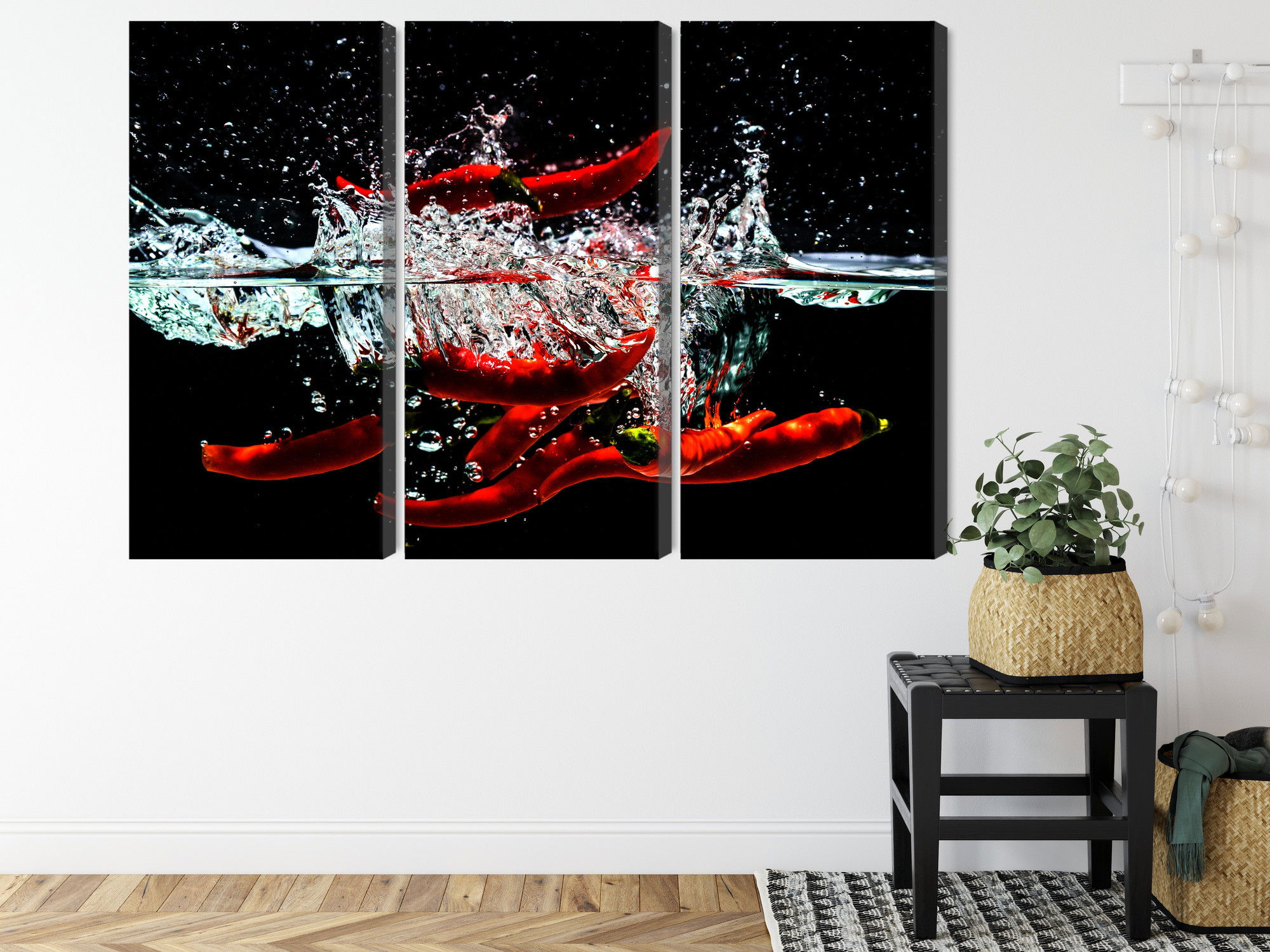Motivet Chili in water återges med hög färgprecision och detaljrikedom tack vare HP Latex-teknologi. Trycket sker med vattenbaserade, luktfria och GREENGUARD Gold-certifierade bläck som ger en upplösning på upp till 300 DPI. Färgerna är UV-beständiga och behåller sin styrka även i ljusa rum, vilket gör tavlan lämplig för både hem- och offentliga miljöer.
