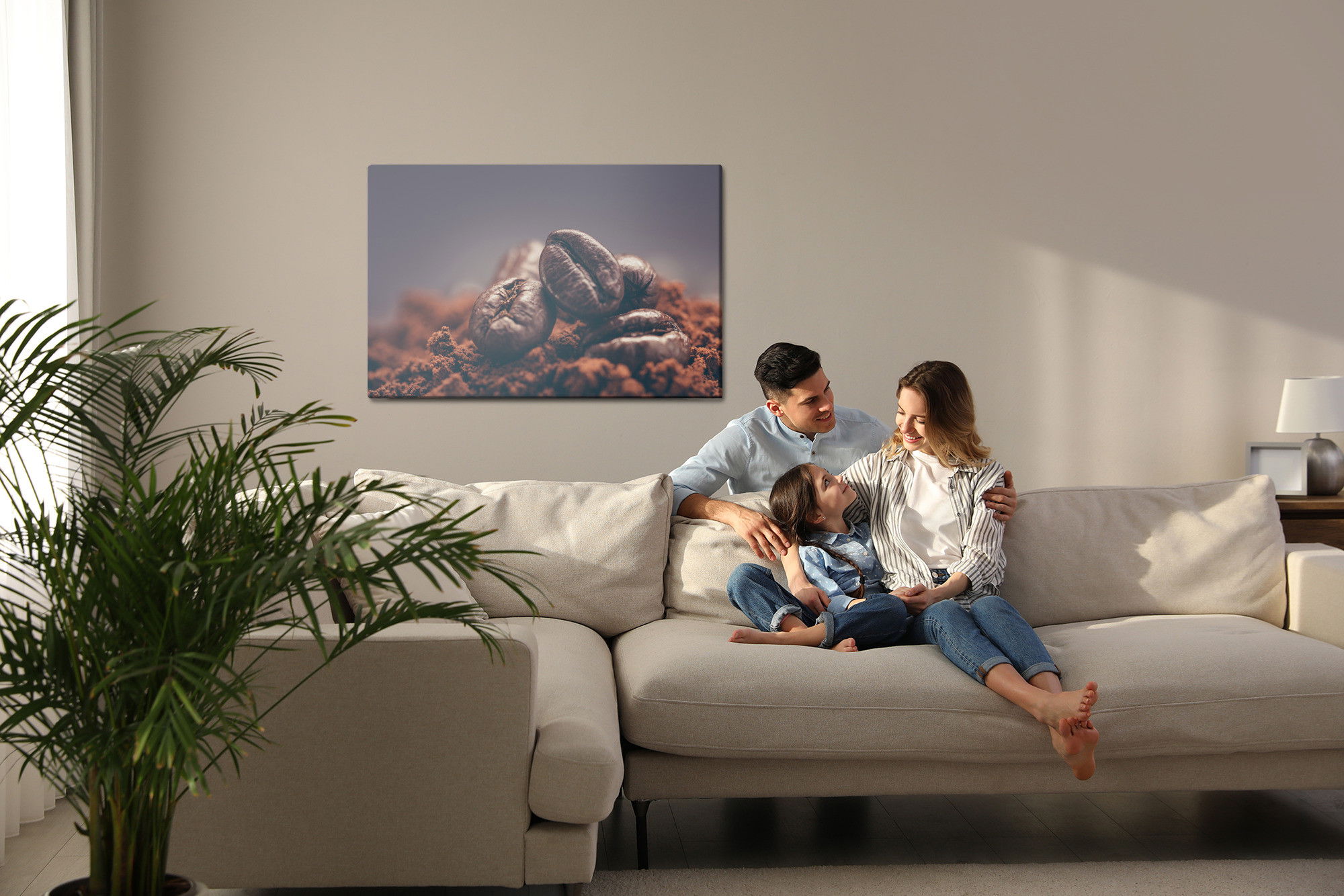 Motivet Closeup of coffee beans återges med hög färgprecision och detaljrikedom tack vare HP Latex-teknologi. Trycket sker med vattenbaserade, luktfria och GREENGUARD Gold-certifierade bläck som ger en upplösning på upp till 300 DPI. Färgerna är UV-beständiga och behåller sin styrka även i ljusa rum, vilket gör tavlan lämplig för både hem- och offentliga miljöer.