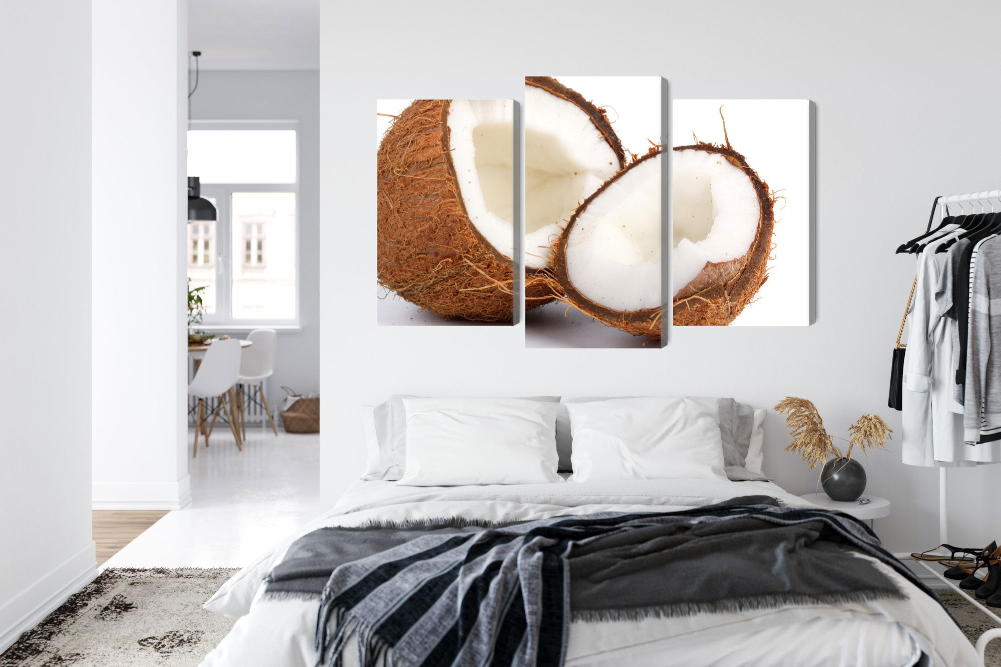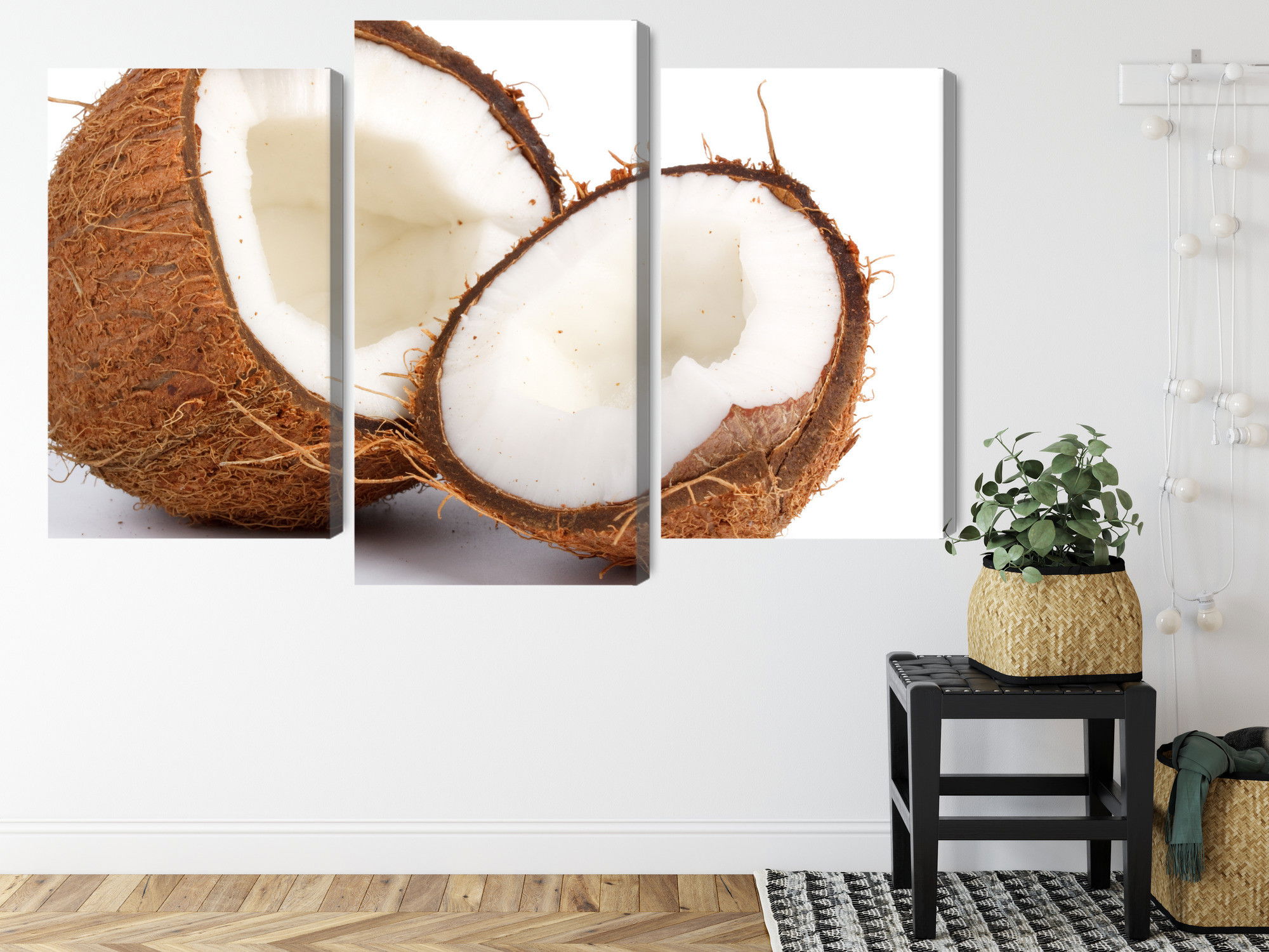 Motivet Coconut halves återges med hög färgprecision och detaljrikedom tack vare HP Latex-teknologi. Trycket sker med vattenbaserade, luktfria och GREENGUARD Gold-certifierade bläck som ger en upplösning på upp till 300 DPI. Färgerna är UV-beständiga och behåller sin styrka även i ljusa rum, vilket gör tavlan lämplig för både hem- och offentliga miljöer.