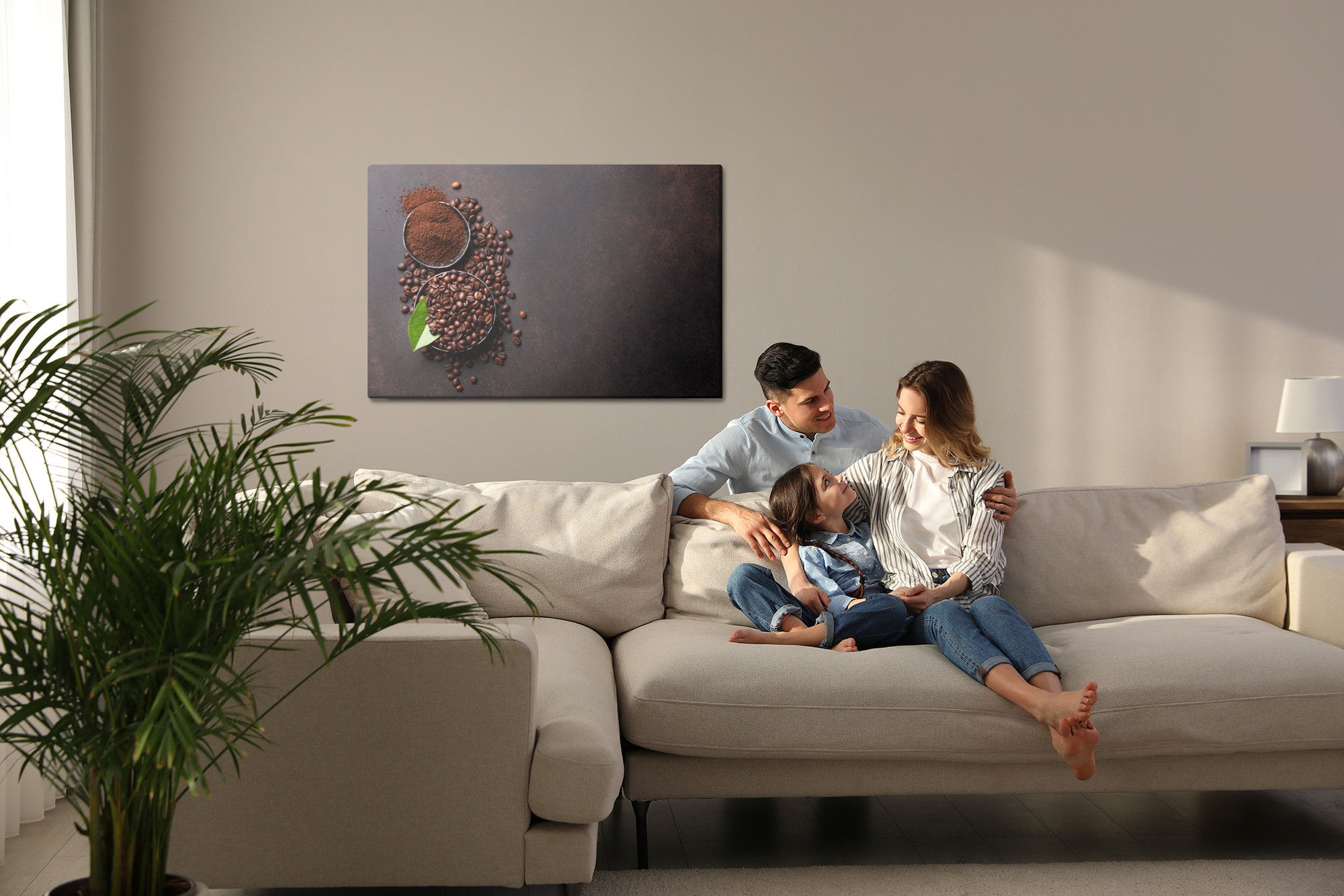 Motivet Coffee beans återges med hög färgprecision och detaljrikedom tack vare HP Latex-teknologi. Trycket sker med vattenbaserade, luktfria och GREENGUARD Gold-certifierade bläck som ger en upplösning på upp till 300 DPI. Färgerna är UV-beständiga och behåller sin styrka även i ljusa rum, vilket gör tavlan lämplig för både hem- och offentliga miljöer.