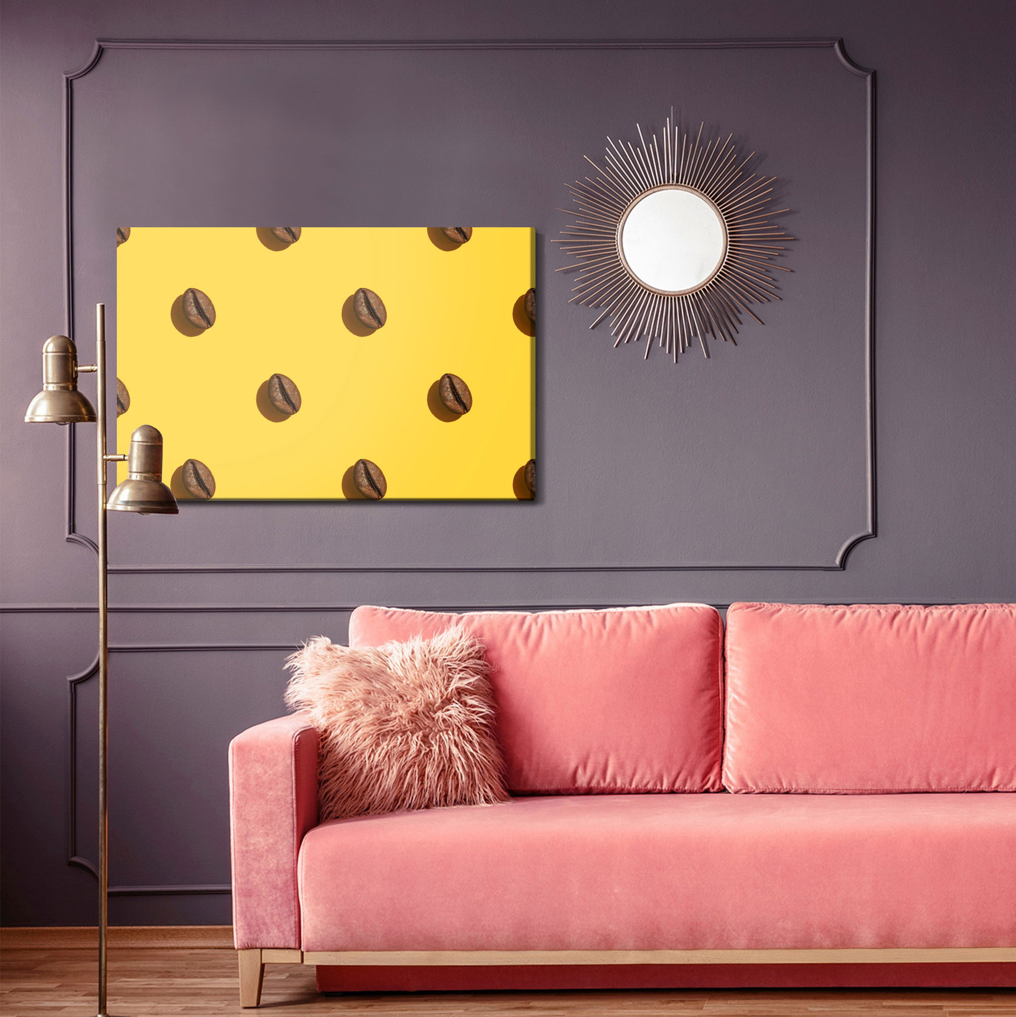 Ljuddämpande tavla - Coffee beans on a yellow