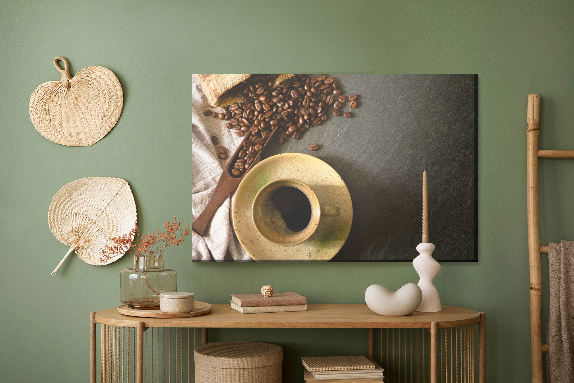 SilentDirects ljuddämpande tavla Coffee with milk foam är designad för att ge både visuellt lugn och akustisk komfort. En fururam med inbyggd kärna av återvunnen polyester bildar grunden, medan canvasytan återger motivet med hög detaljskärpa.