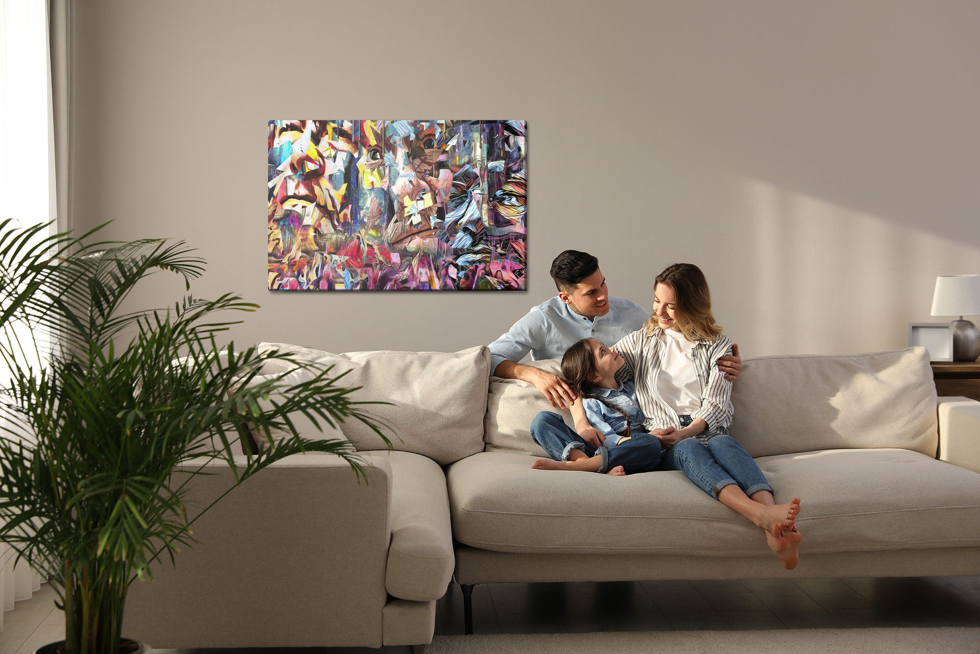 Motivet Colorful futuristic återges med hög färgprecision och detaljrikedom tack vare HP Latex-teknologi. Trycket sker med vattenbaserade, luktfria och GREENGUARD Gold-certifierade bläck som ger en upplösning på upp till 300 DPI. Färgerna är UV-beständiga och behåller sin styrka även i ljusa rum, vilket gör tavlan lämplig för både hem- och offentliga miljöer.