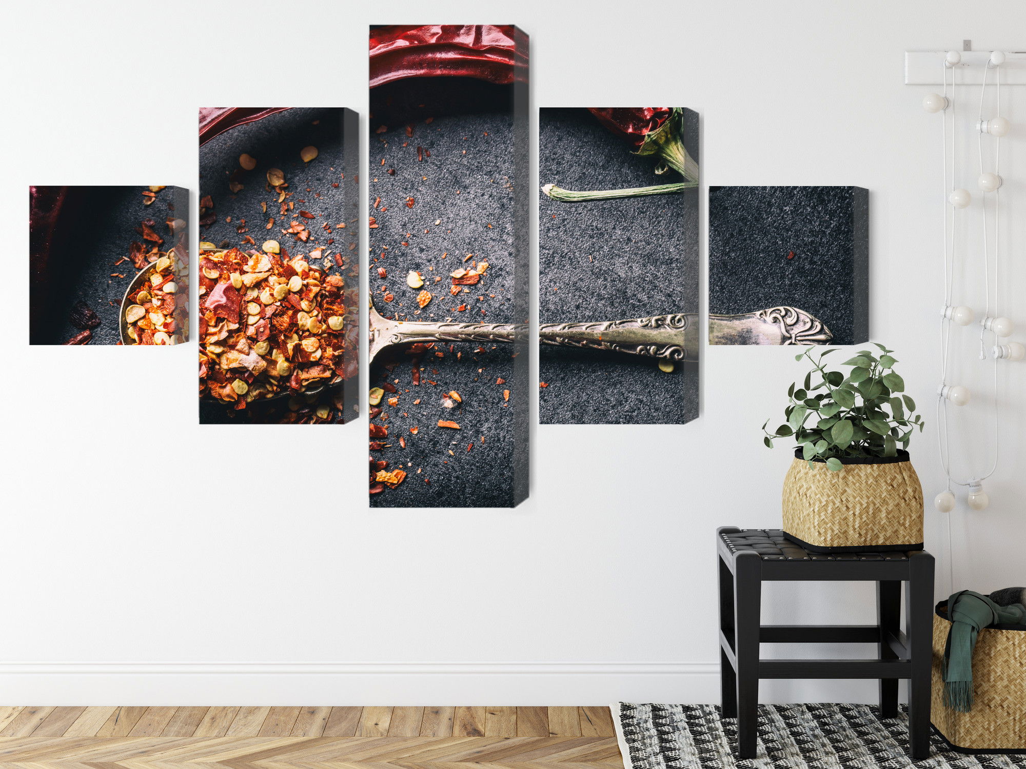 Motivet Dried chili peppers återges med hög färgprecision och detaljrikedom tack vare HP Latex-teknologi. Trycket sker med vattenbaserade, luktfria och GREENGUARD Gold-certifierade bläck som ger en upplösning på upp till 300 DPI. Färgerna är UV-beständiga och behåller sin styrka även i ljusa rum, vilket gör tavlan lämplig för både hem- och offentliga miljöer.