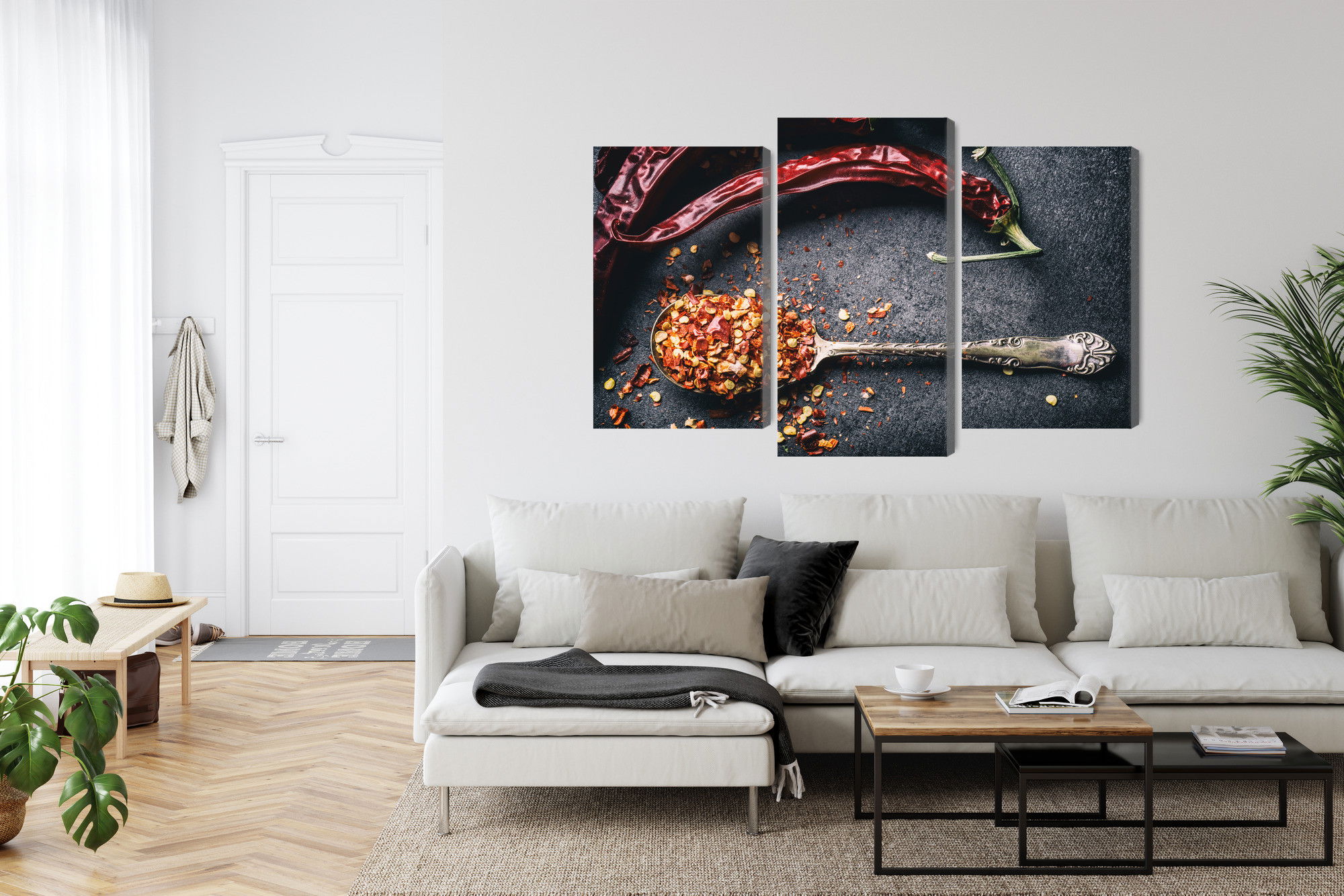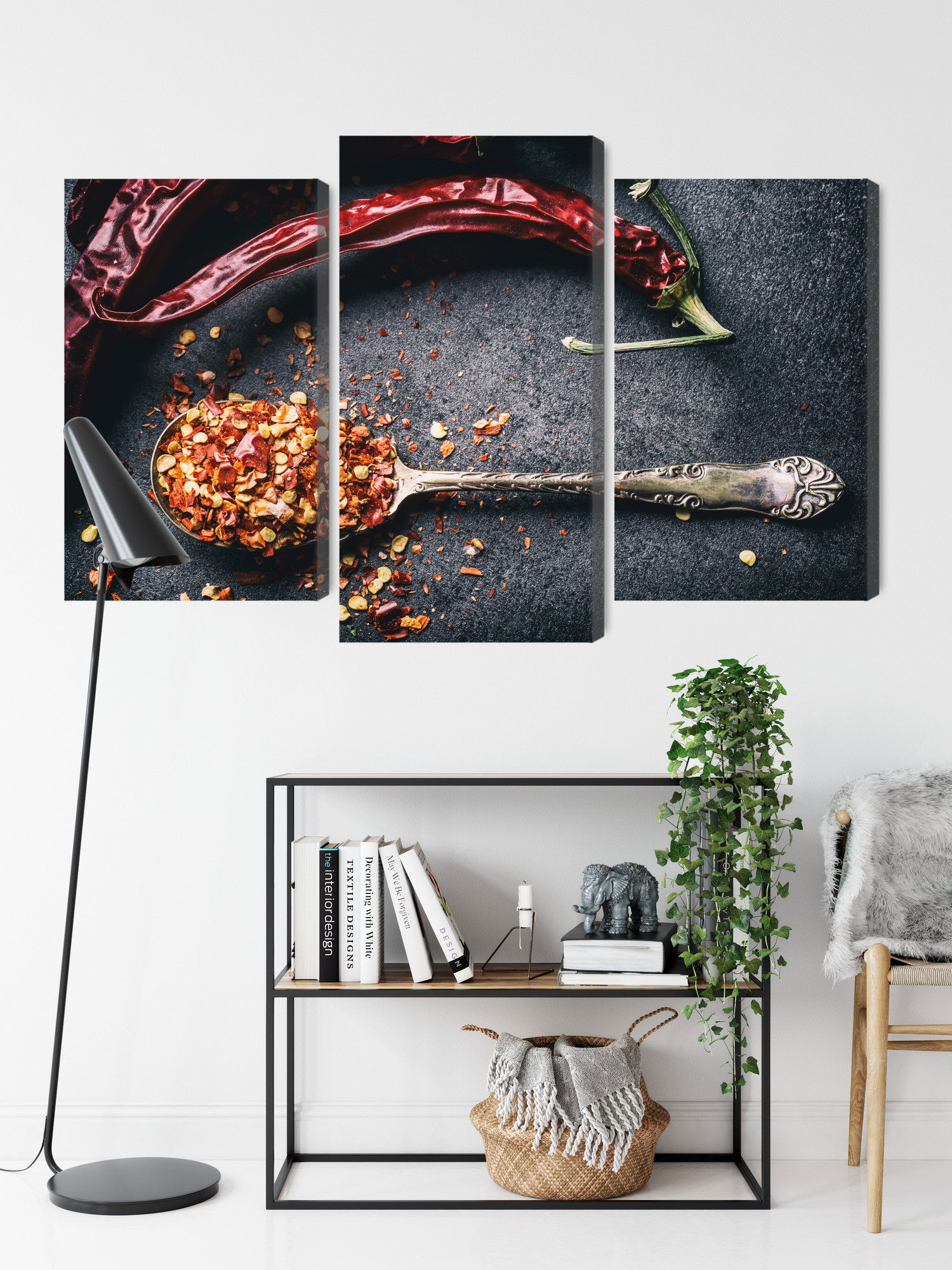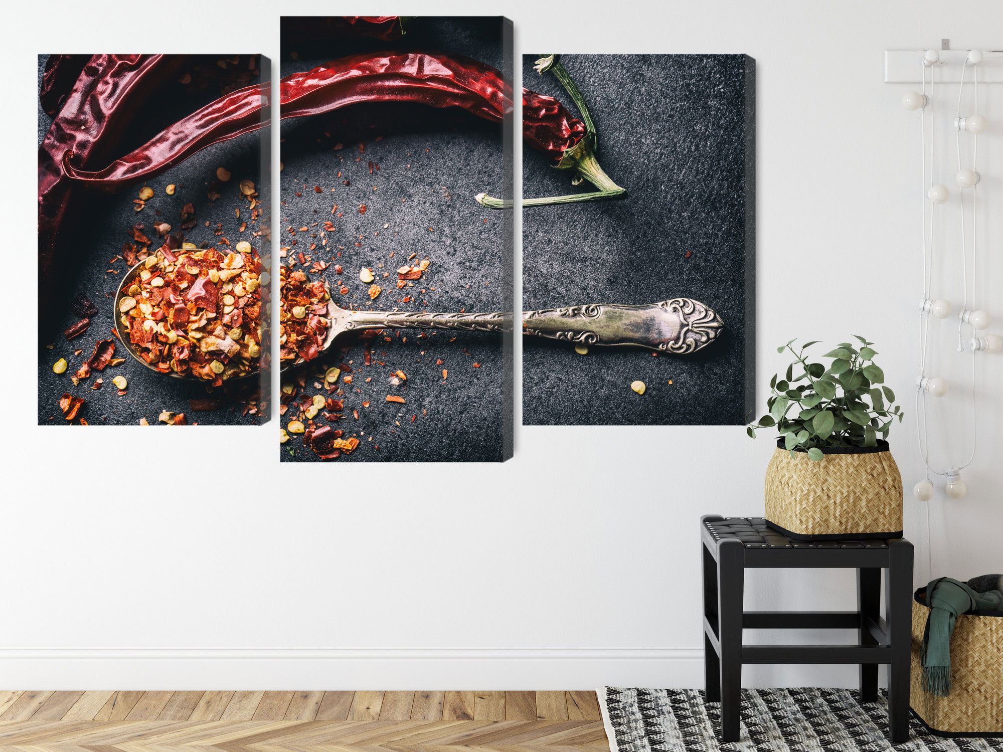 Motivet Dried chili peppers återges med hög färgprecision och detaljrikedom tack vare HP Latex-teknologi. Trycket sker med vattenbaserade, luktfria och GREENGUARD Gold-certifierade bläck som ger en upplösning på upp till 300 DPI. Färgerna är UV-beständiga och behåller sin styrka även i ljusa rum, vilket gör tavlan lämplig för både hem- och offentliga miljöer.
