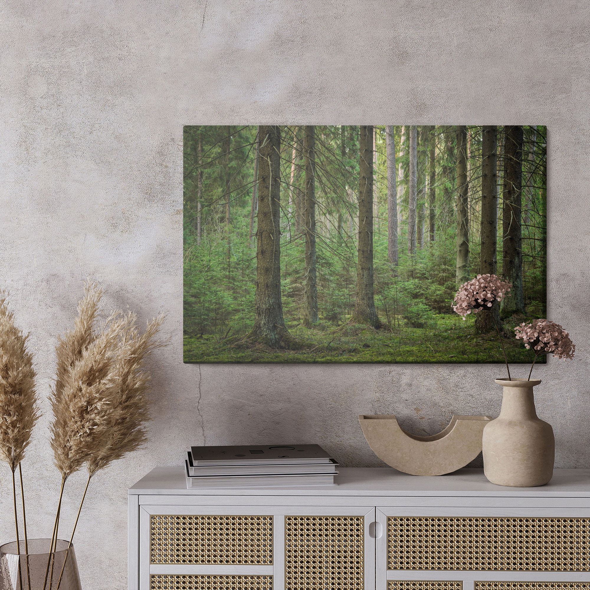 Med SilentDirects ljuddämpande tavla Forest 3d view får du både ett stilrent motiv och en akustisk lösning i samma produkt. Tavlan byggs i Sverige och utgår från en canvastavla med fururam som fylls med en återvunnen polyestercell för effektiv ljudabsorption.