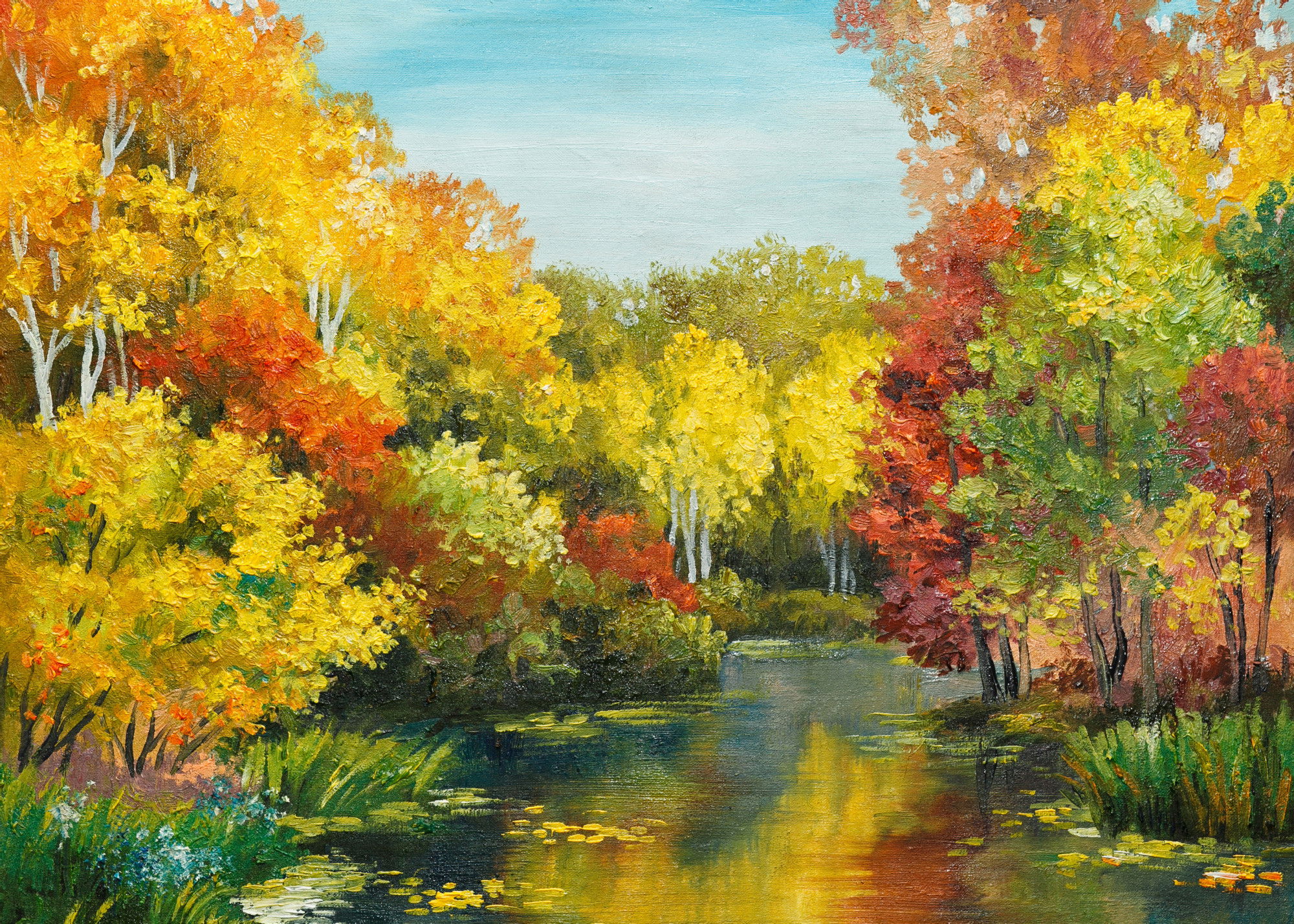 Ljuddämpande tavla – Forest in autumn colors för lugnare rum och mjukare akustik