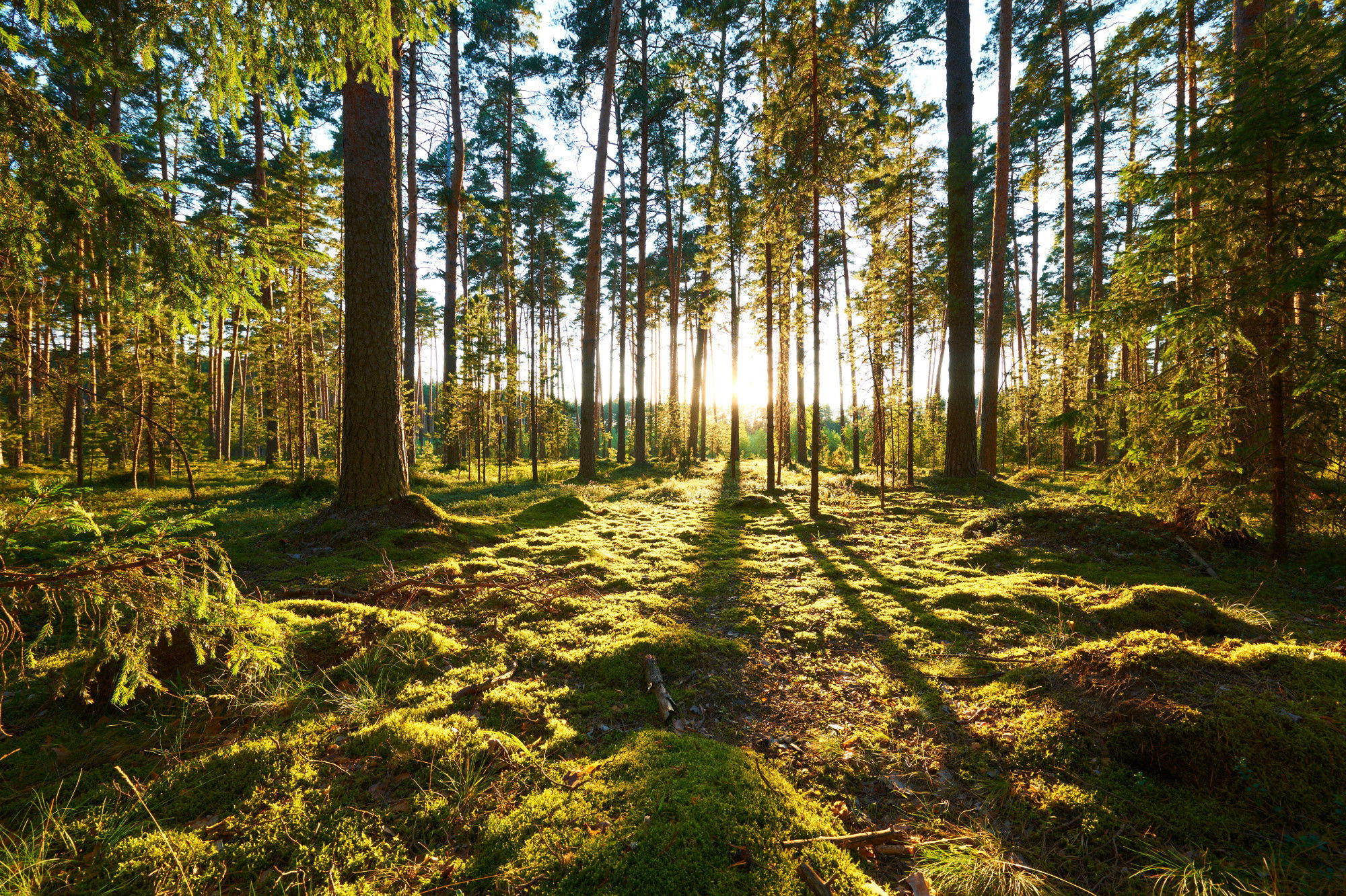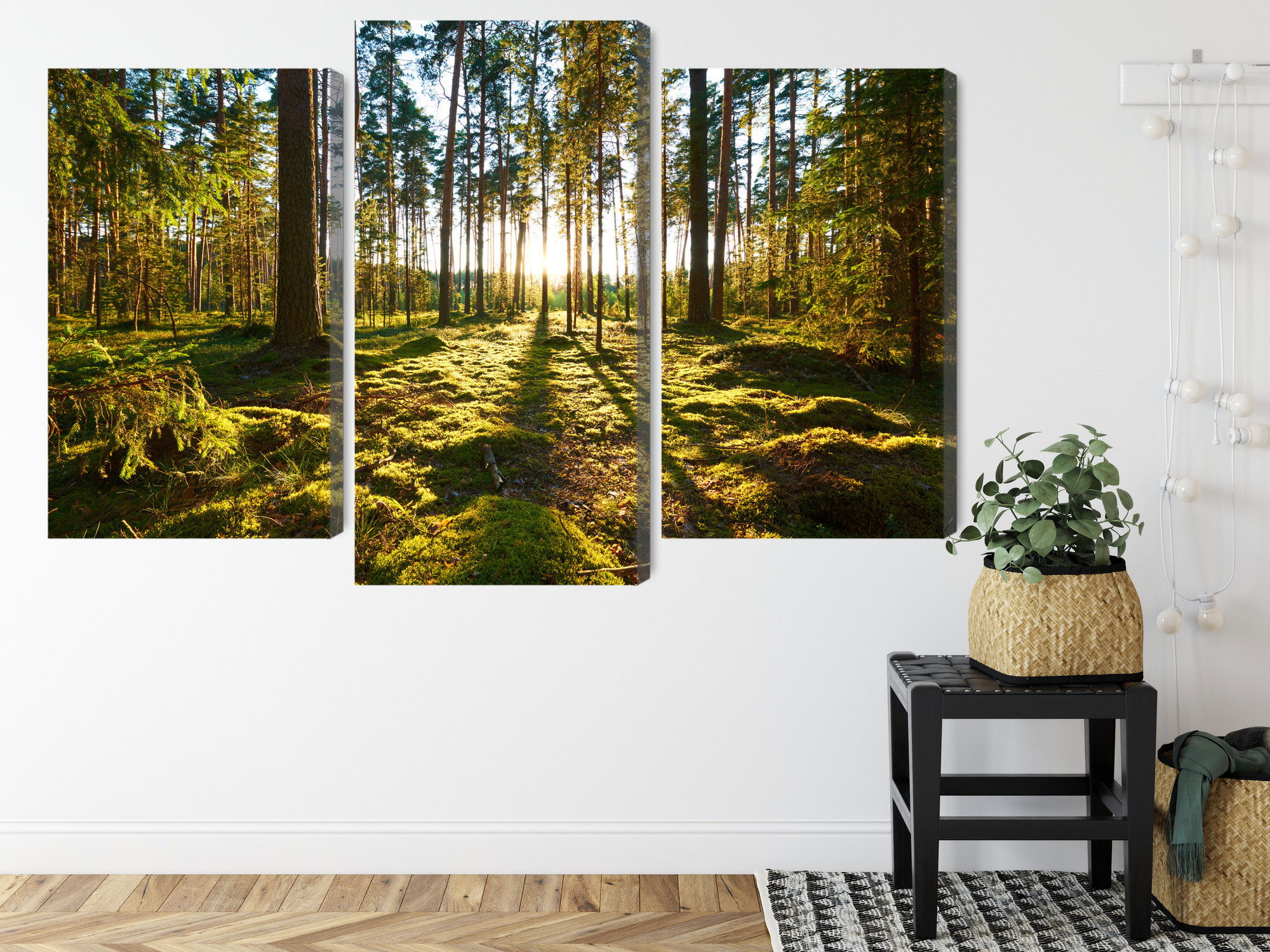 Ljuddämpande tavla – Forest landscape with sunset för lugnare rum och mjukare akustik