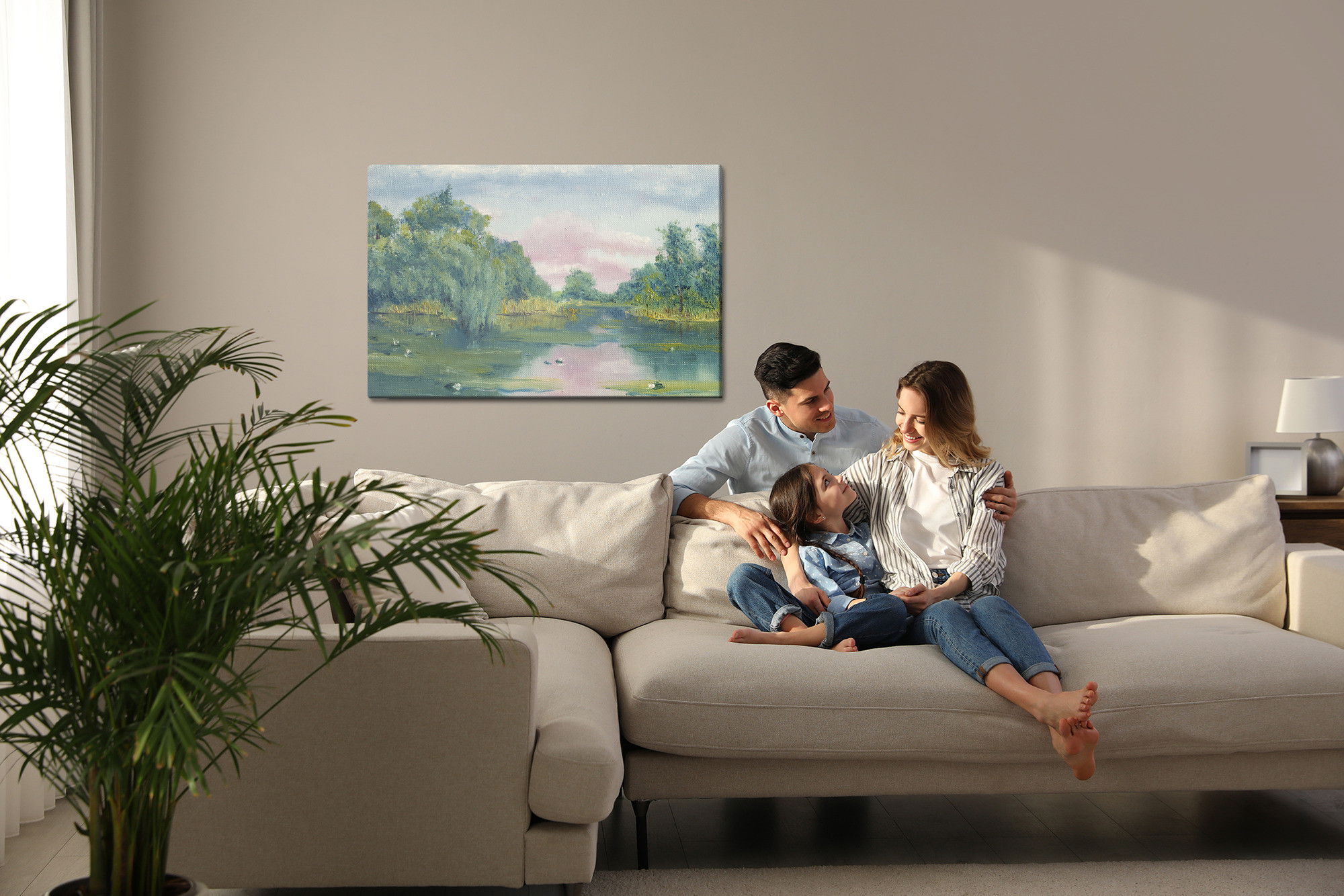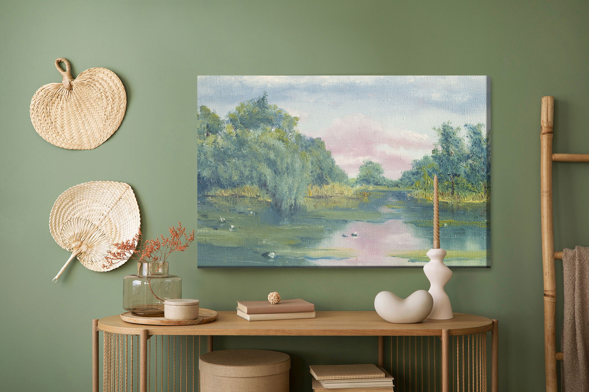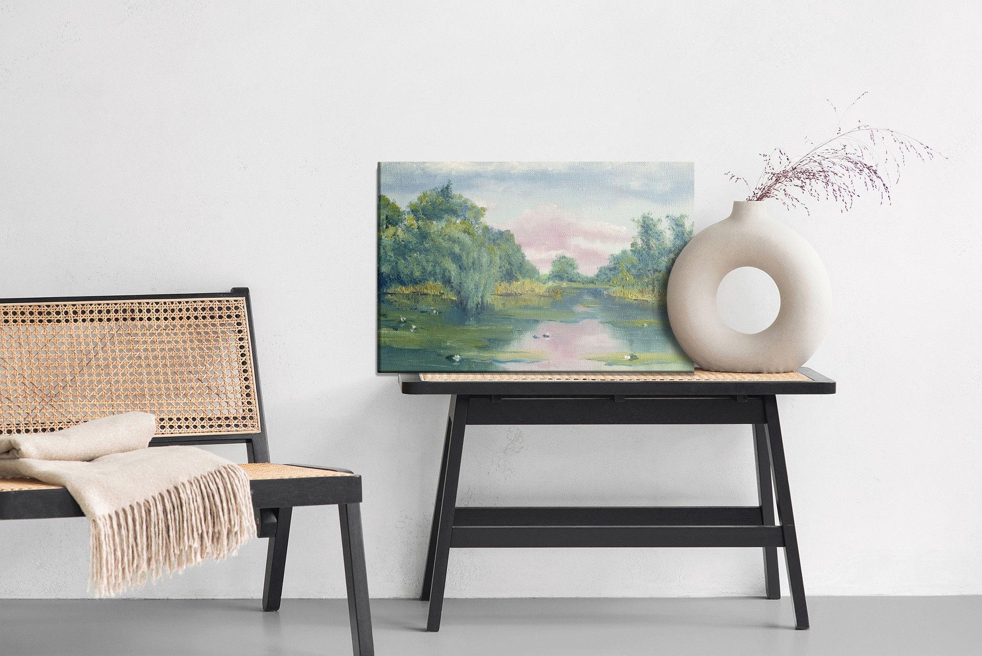 Placera tavlan där du upplever mycket eko eller hög ljudnivå, till exempel i öppna planlösningar, hemmakontor eller sociala ytor. Motiv i denna kategori gör sig särskilt bra i rum där du vill skapa en genomtänkt och sammanhängande känsla. Landskap och naturmotiv tillför en organisk mjukhet där färger och former skapar ett harmoniskt intryck som fungerar i både ljusa och mer dämpade interiörer.