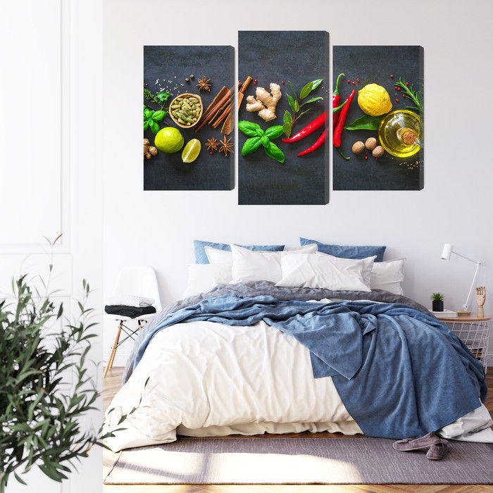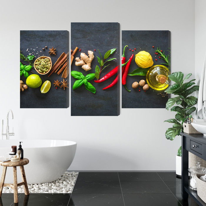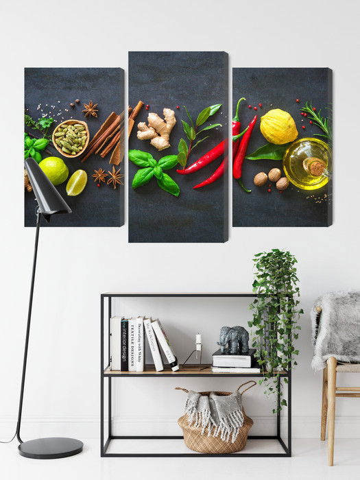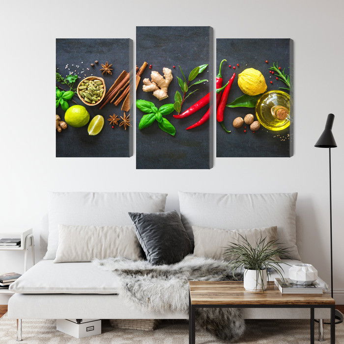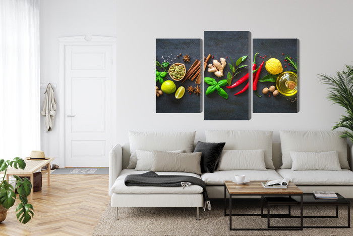Motivet Fresh aromatic spices återges med hög färgprecision och detaljrikedom tack vare HP Latex-teknologi. Trycket sker med vattenbaserade, luktfria och GREENGUARD Gold-certifierade bläck som ger en upplösning på upp till 300 DPI. Färgerna är UV-beständiga och behåller sin styrka även i ljusa rum, vilket gör tavlan lämplig för både hem- och offentliga miljöer.