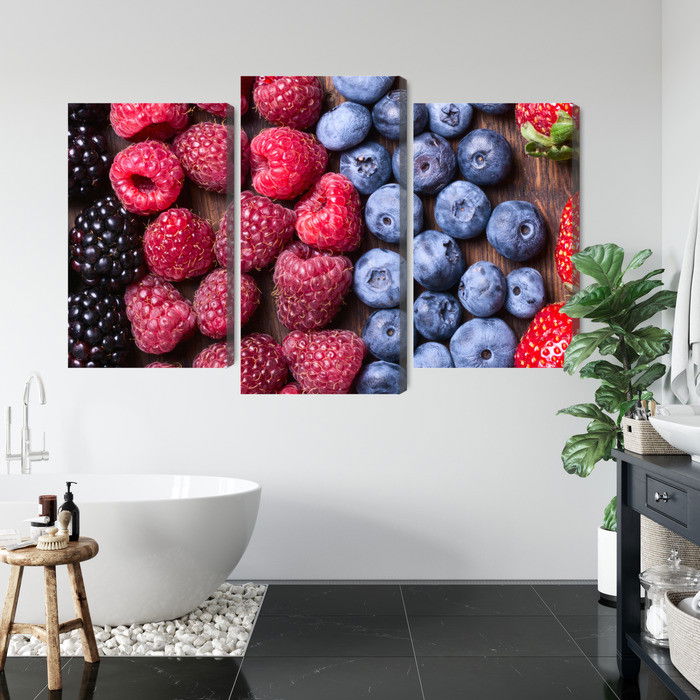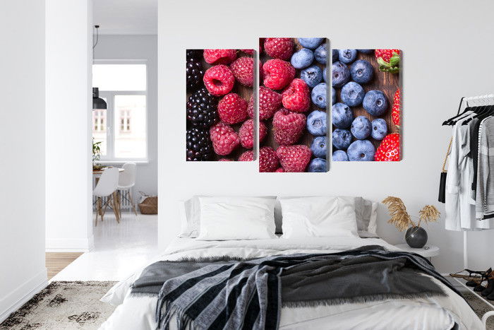 Varje tavla monteras på en massiv fururam. Format upp till 70×50 cm har en ram på 15 mm, medan format från 90×60 cm och uppåt har en ram på 20 mm. Den exakta dukspänningen gör att tavlan håller sin form över tid. Motivet Fresh sweet fruit trycks runt hela ramen vilket ger ett stilrent galleriuttryck där tavlan är lika vacker från sidan som framifrån. Kombinationen av rak dukspänning, rena linjer och korrekt tryck ger en professionell finish.