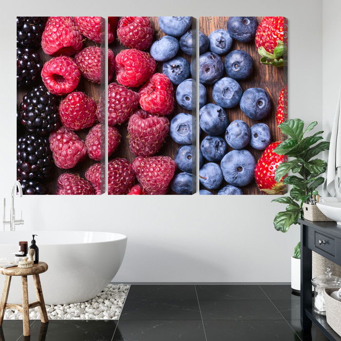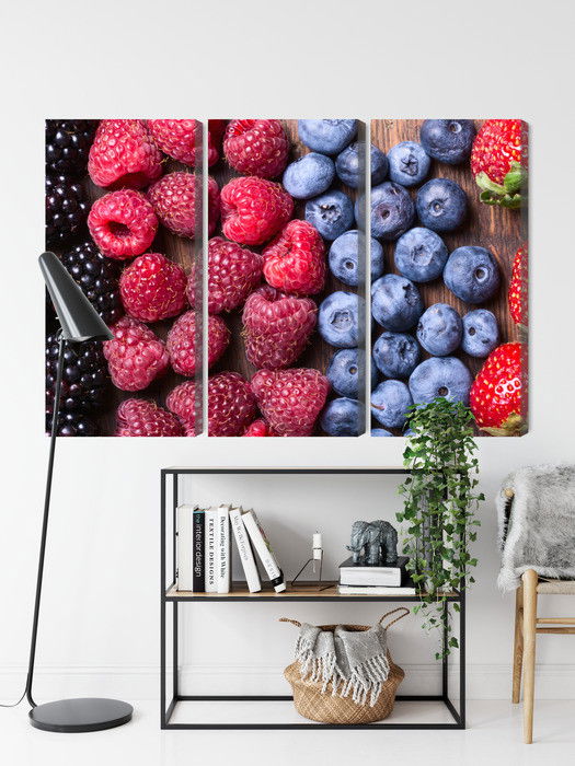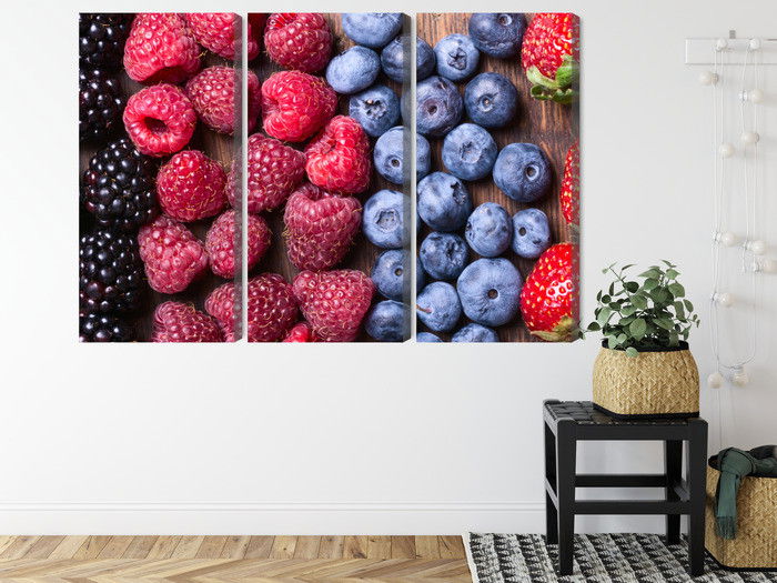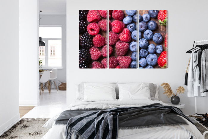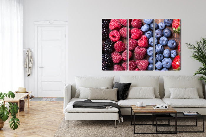 Motivet Fresh sweet fruit återges med hög färgprecision och detaljrikedom tack vare HP Latex-teknologi. Trycket sker med vattenbaserade, luktfria och GREENGUARD Gold-certifierade bläck som ger en upplösning på upp till 300 DPI. Färgerna är UV-beständiga och behåller sin styrka även i ljusa rum, vilket gör tavlan lämplig för både hem- och offentliga miljöer.