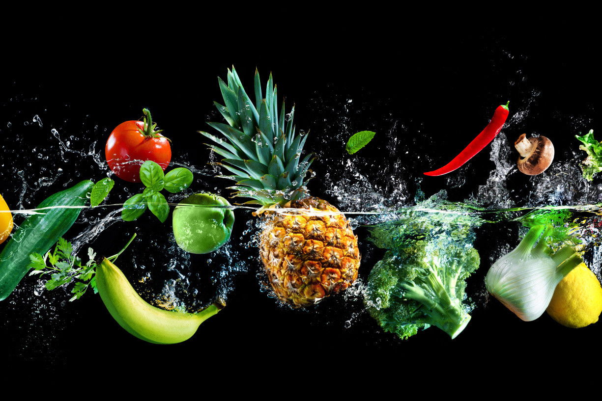Ljuddämpande tavla – Fresh vegetables in the water för lugnare rum och mjukare akustik