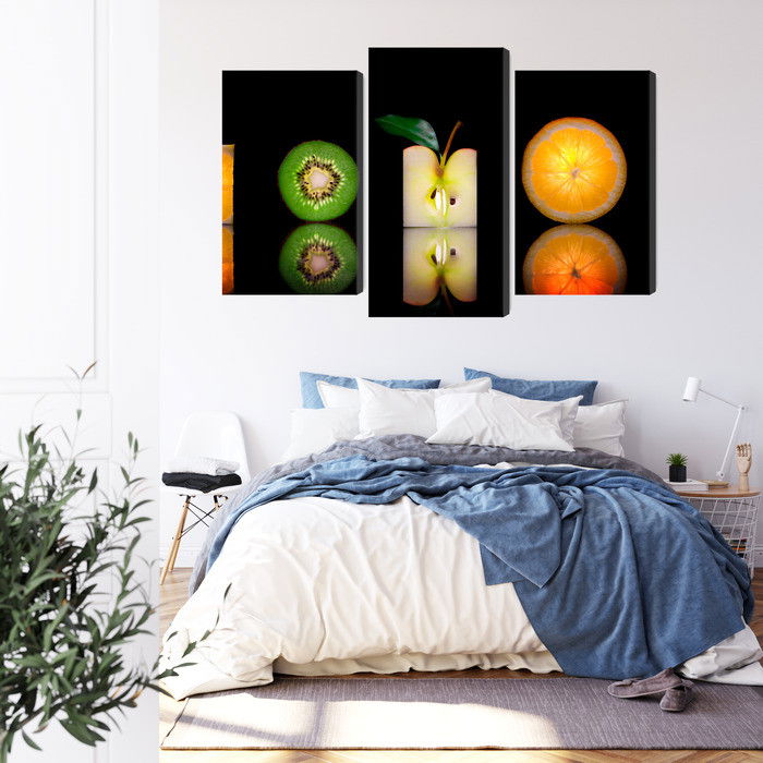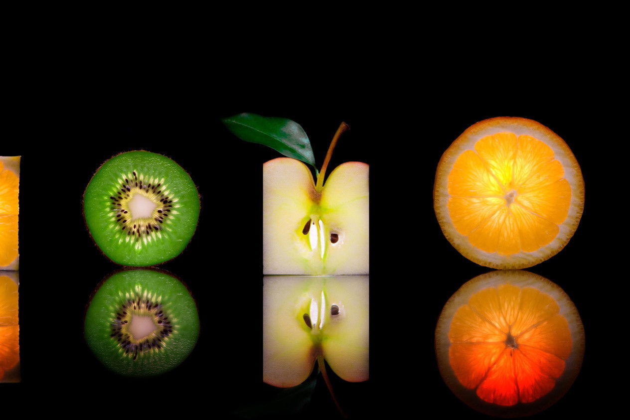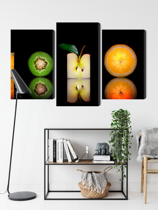 Motivet Fruit halves återges med hög färgprecision och detaljrikedom tack vare HP Latex-teknologi. Trycket sker med vattenbaserade, luktfria och GREENGUARD Gold-certifierade bläck som ger en upplösning på upp till 300 DPI. Färgerna är UV-beständiga och behåller sin styrka även i ljusa rum, vilket gör tavlan lämplig för både hem- och offentliga miljöer.
