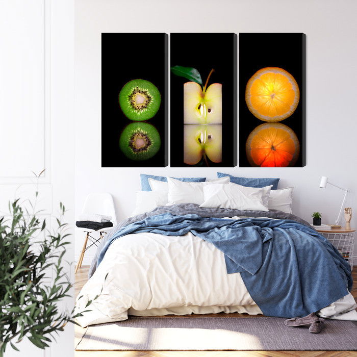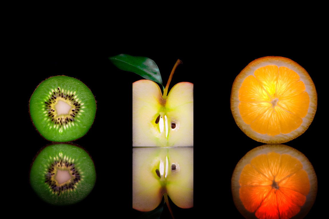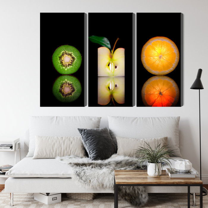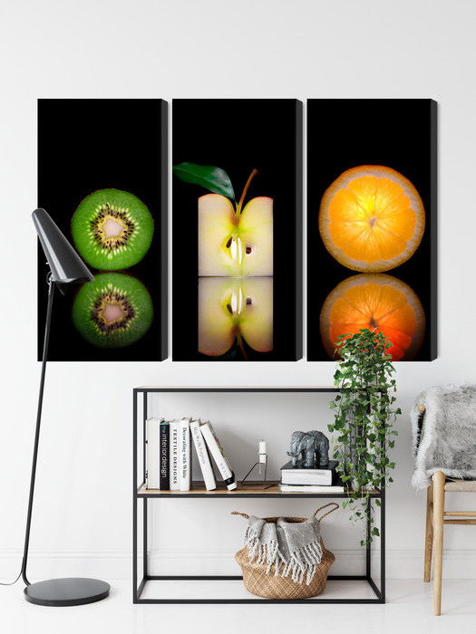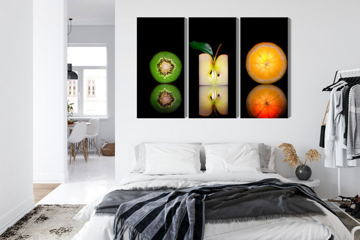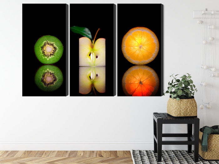 Motivet Fruit halves återges med hög färgprecision och detaljrikedom tack vare HP Latex-teknologi. Trycket sker med vattenbaserade, luktfria och GREENGUARD Gold-certifierade bläck som ger en upplösning på upp till 300 DPI. Färgerna är UV-beständiga och behåller sin styrka även i ljusa rum, vilket gör tavlan lämplig för både hem- och offentliga miljöer.