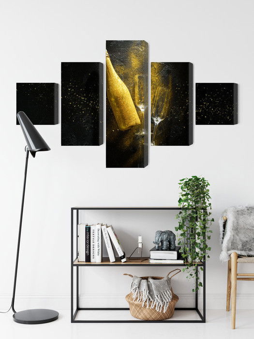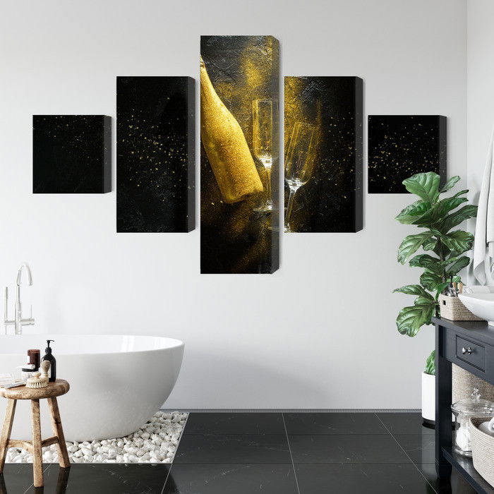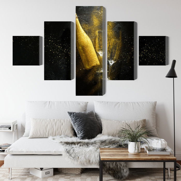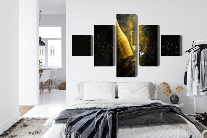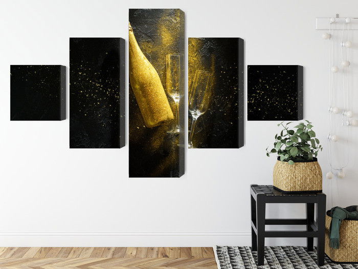 Ljuddämpande tavla – Golden bottle of champagne för lugnare rum och mjukare akustik