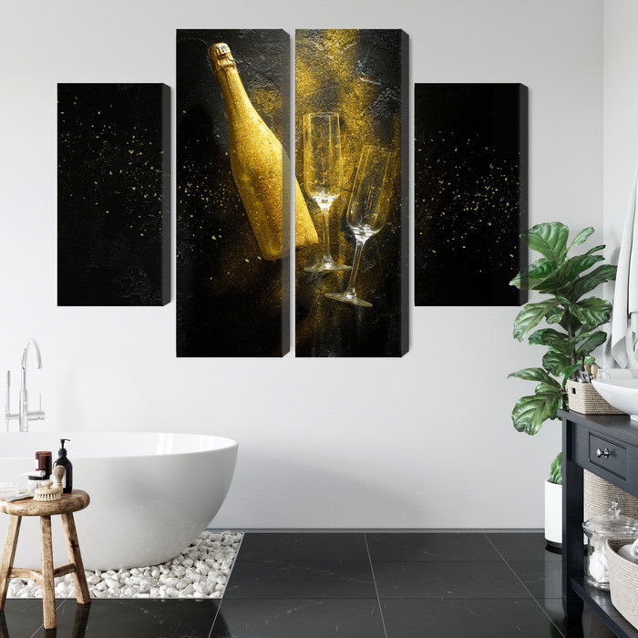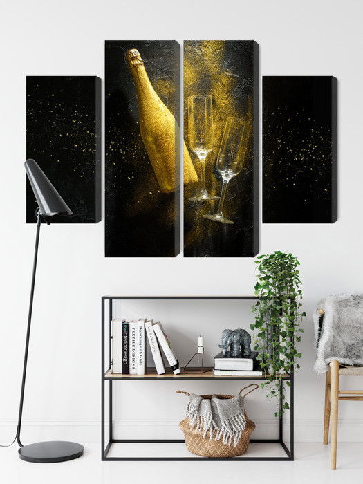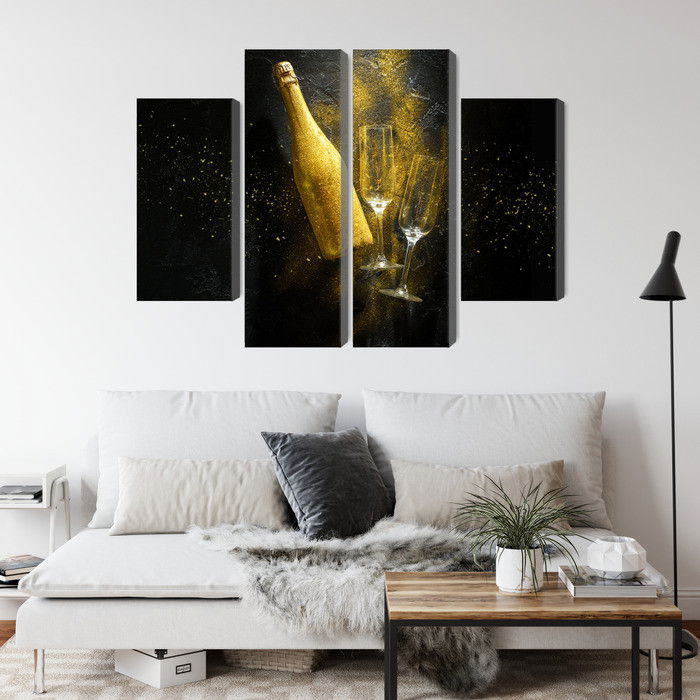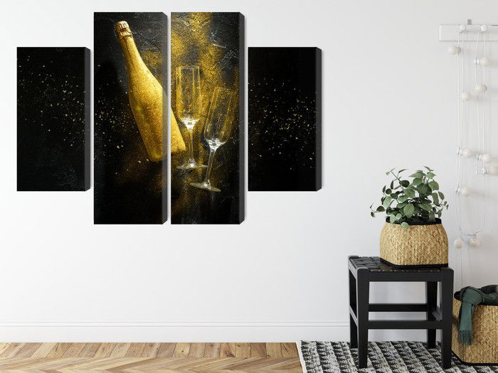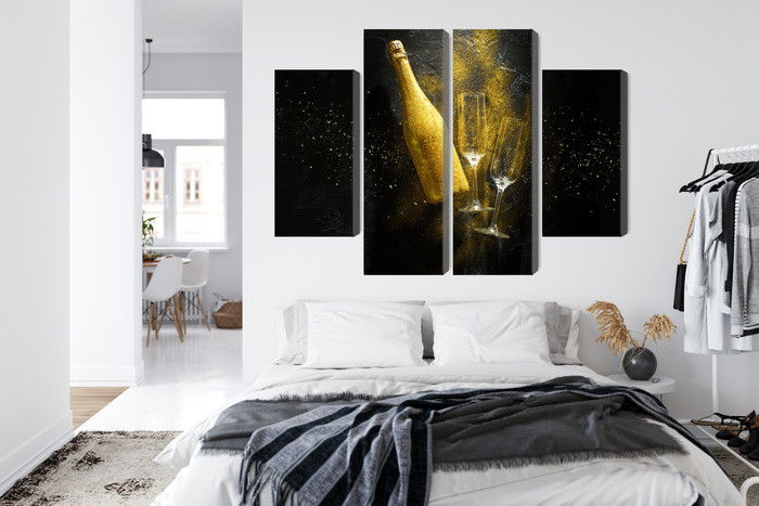 Ljuddämpande tavla – Golden bottle of champagne för lugnare rum och mjukare akustik