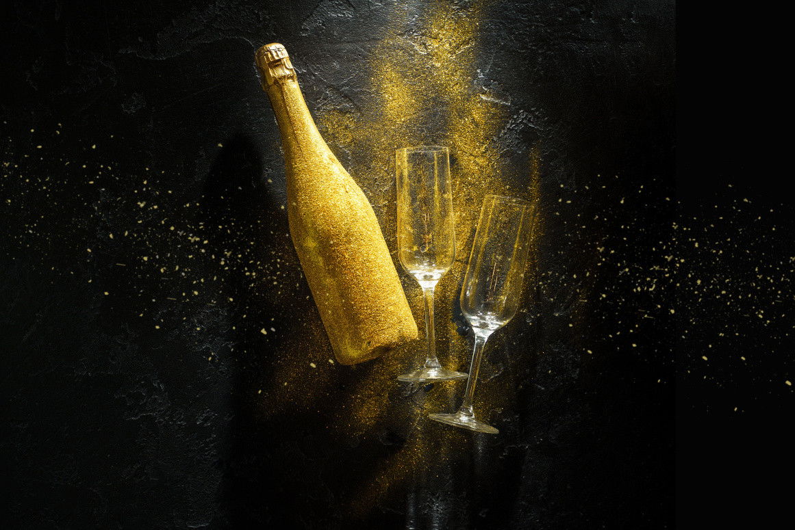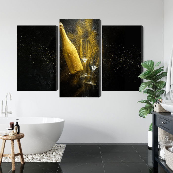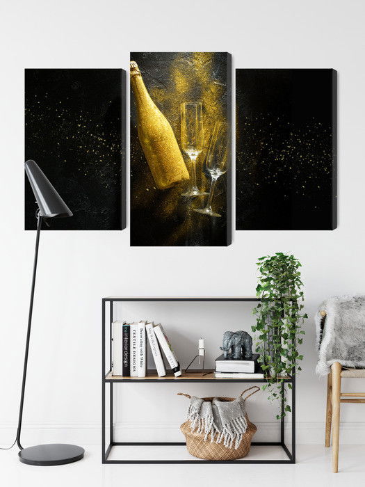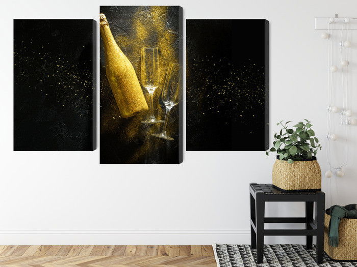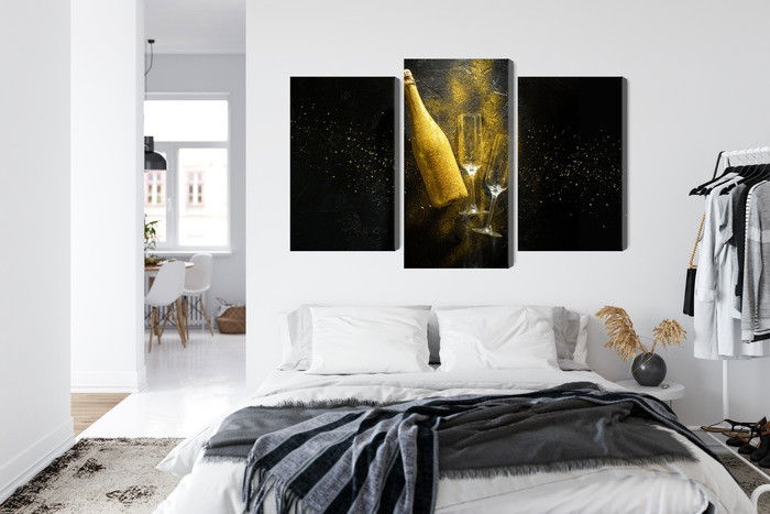 Ljuddämpande tavla – Golden bottle of champagne för lugnare rum och mjukare akustik