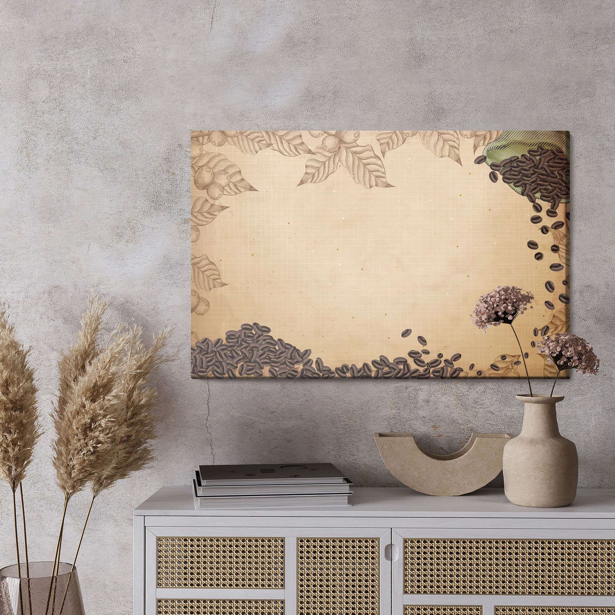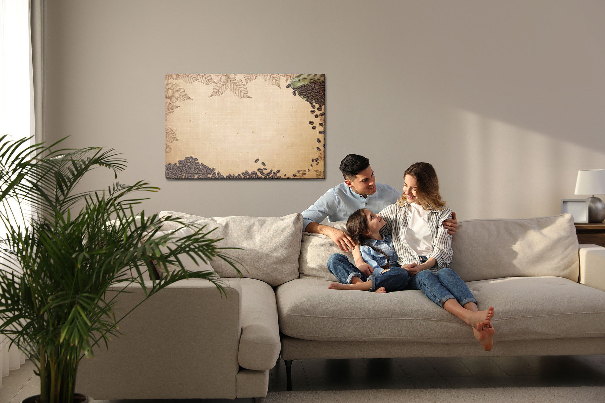 Varje tavla monteras på en massiv fururam. Format upp till 70×50 cm har en ram på 15 mm, medan format från 90×60 cm och uppåt har en ram på 20 mm. Den exakta dukspänningen gör att tavlan håller sin form över tid. Motivet Grains on a jute bag trycks runt hela ramen vilket ger ett stilrent galleriuttryck där tavlan är lika vacker från sidan som framifrån. Kombinationen av rak dukspänning, rena linjer och korrekt tryck ger en professionell finish.