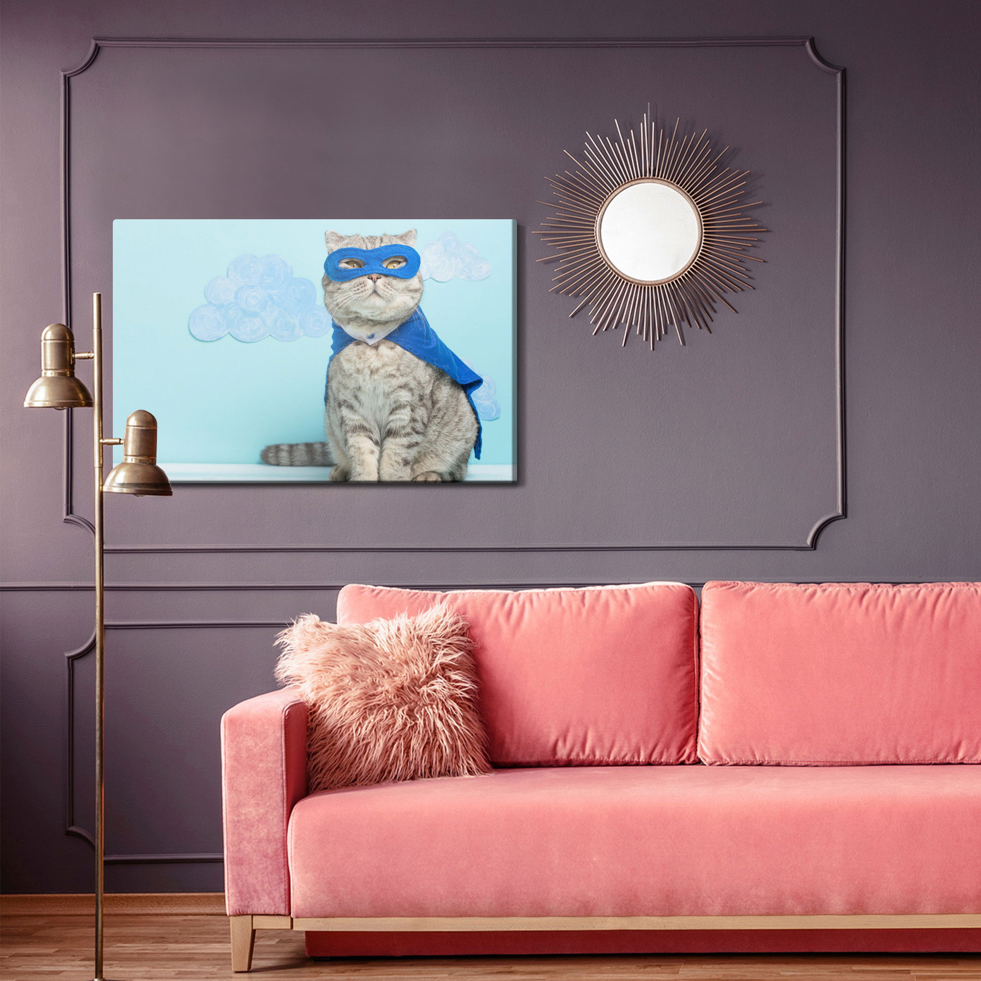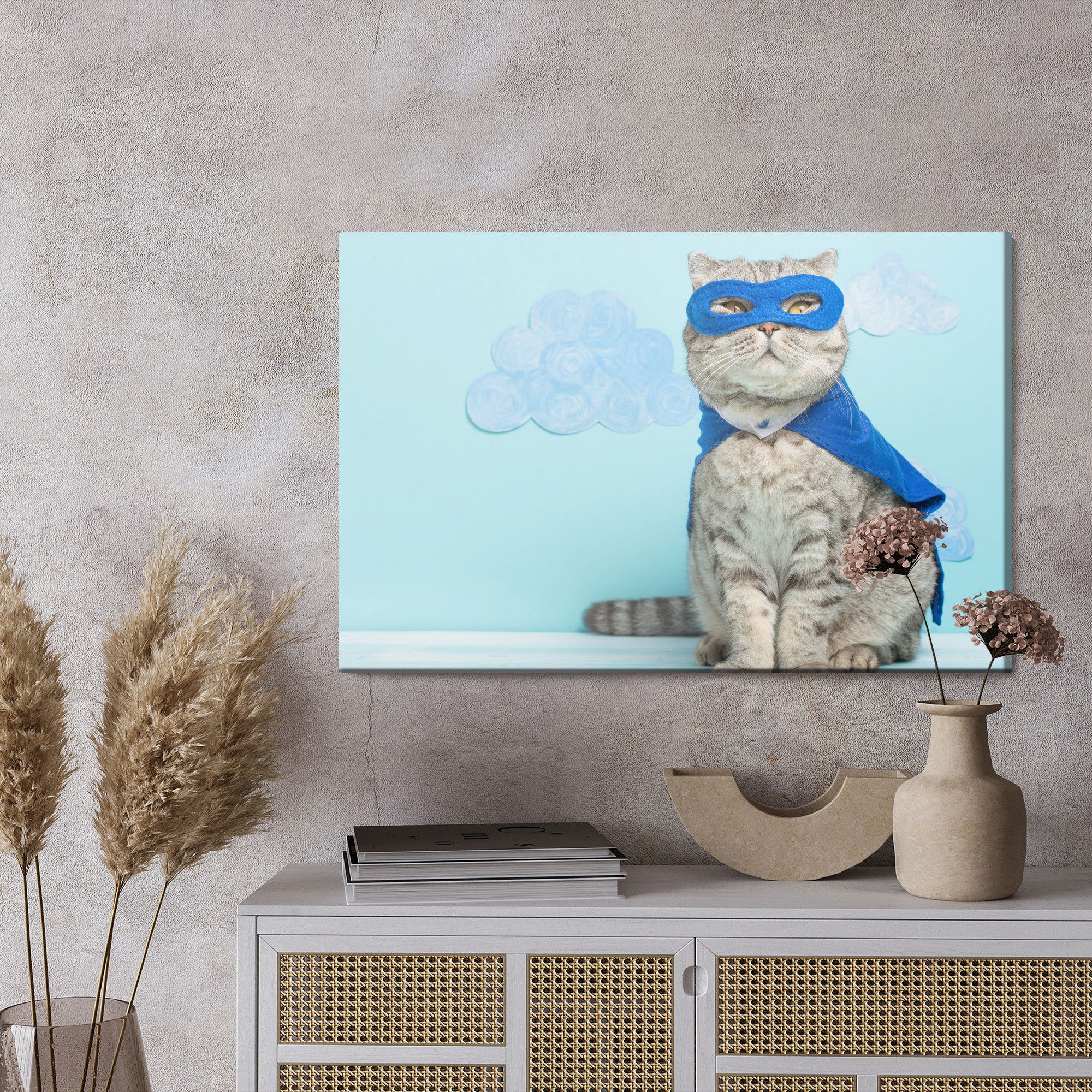 Ljuddämpande tavla – Gray cat with a mask för lugnare rum och mjukare akustik