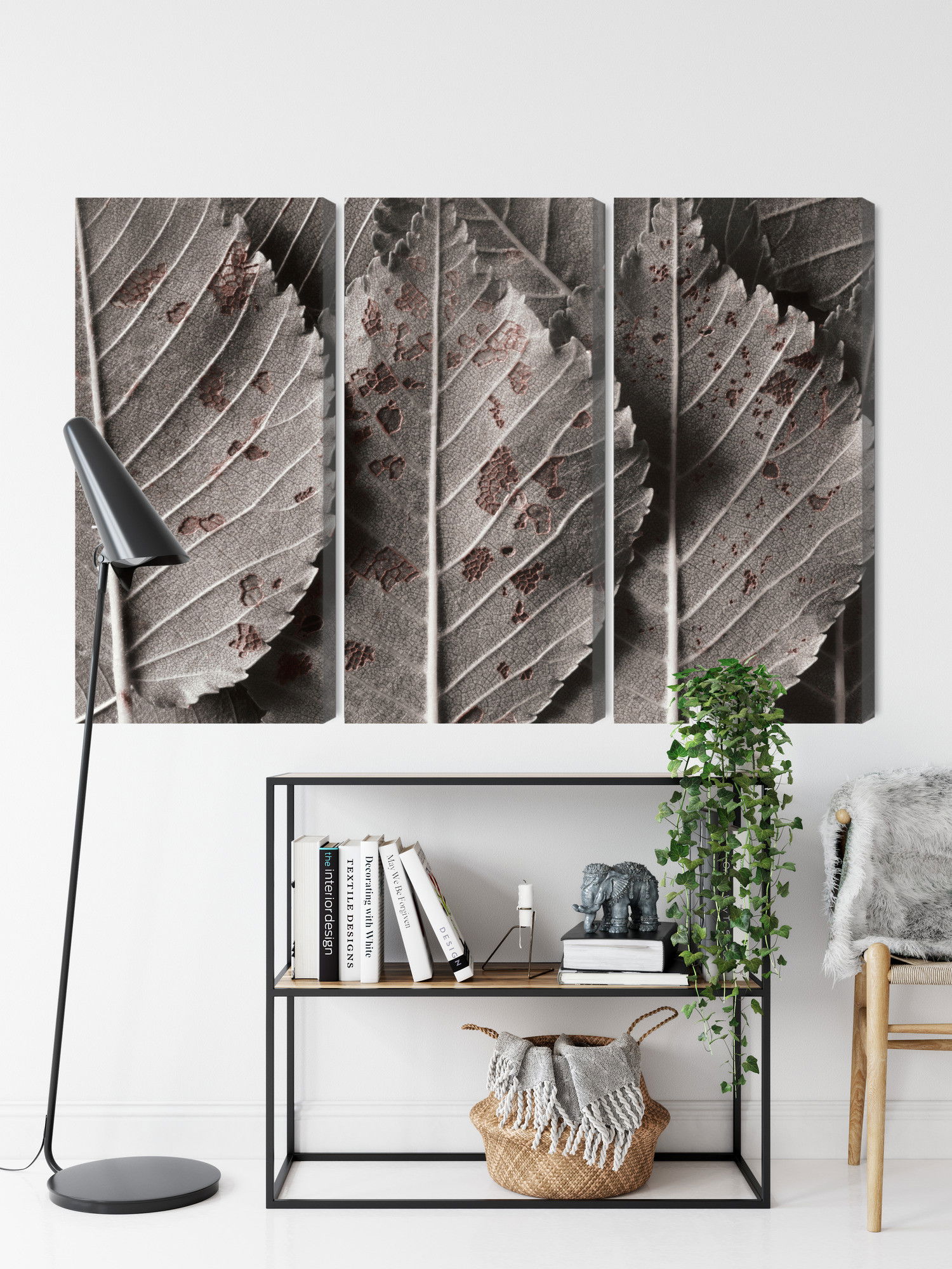 Ljuddämpande tavla – Gray leaves on a macro scale för lugnare rum och mjukare akustik