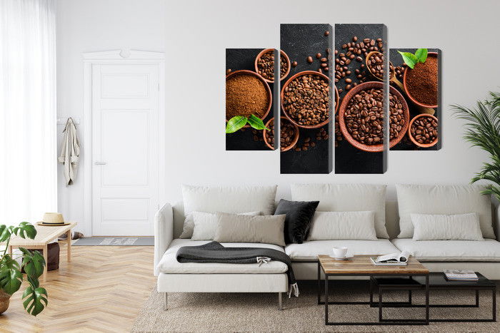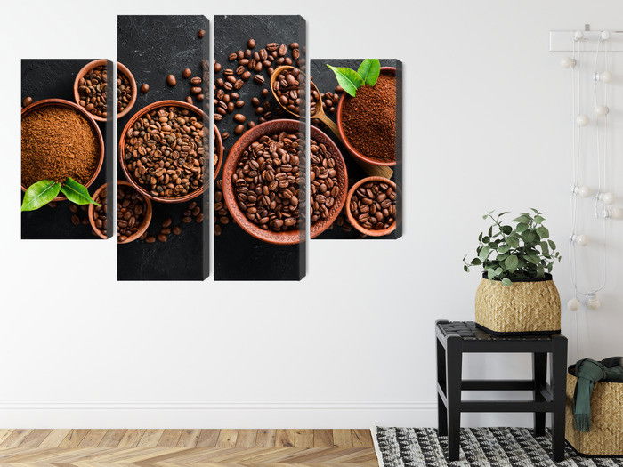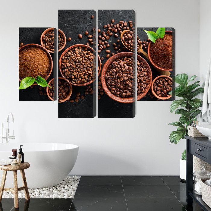 Motivet Ground coffee and beans återges med hög färgprecision och detaljrikedom tack vare HP Latex-teknologi. Trycket sker med vattenbaserade, luktfria och GREENGUARD Gold-certifierade bläck som ger en upplösning på upp till 300 DPI. Färgerna är UV-beständiga och behåller sin styrka även i ljusa rum, vilket gör tavlan lämplig för både hem- och offentliga miljöer.