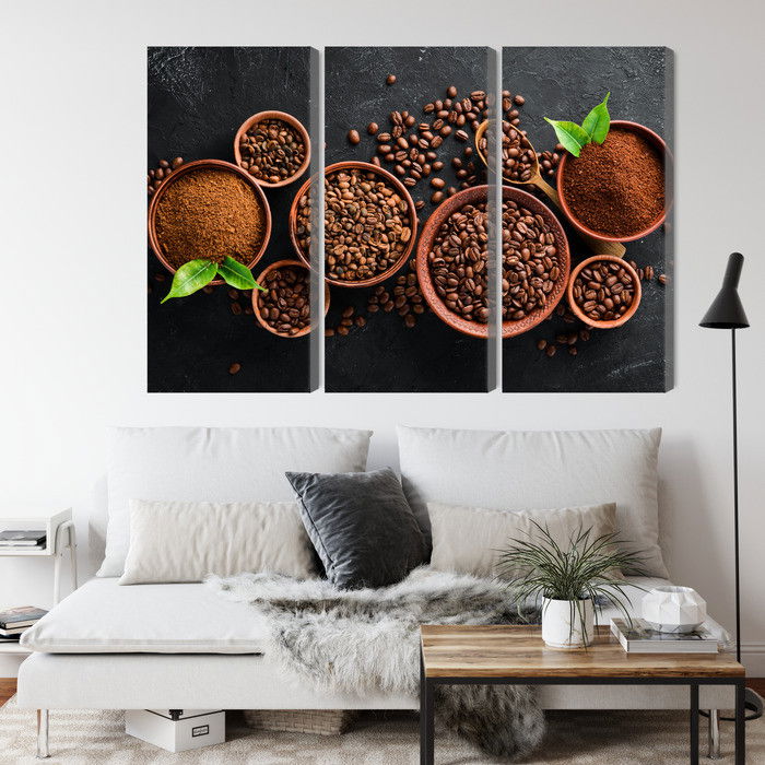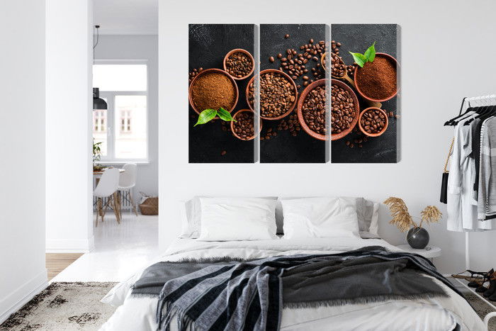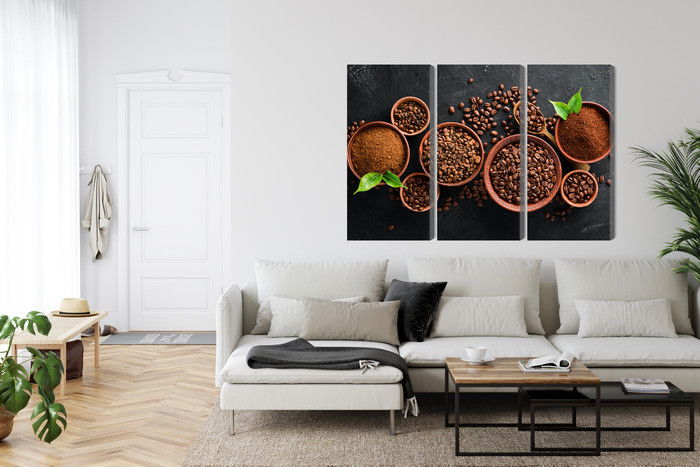 Varje tavla monteras på en massiv fururam. Format upp till 70×50 cm har en ram på 15 mm, medan format från 90×60 cm och uppåt har en ram på 20 mm. Den exakta dukspänningen gör att tavlan håller sin form över tid. Motivet Ground coffee and beans trycks runt hela ramen vilket ger ett stilrent galleriuttryck där tavlan är lika vacker från sidan som framifrån. Kombinationen av rak dukspänning, rena linjer och korrekt tryck ger en professionell finish.