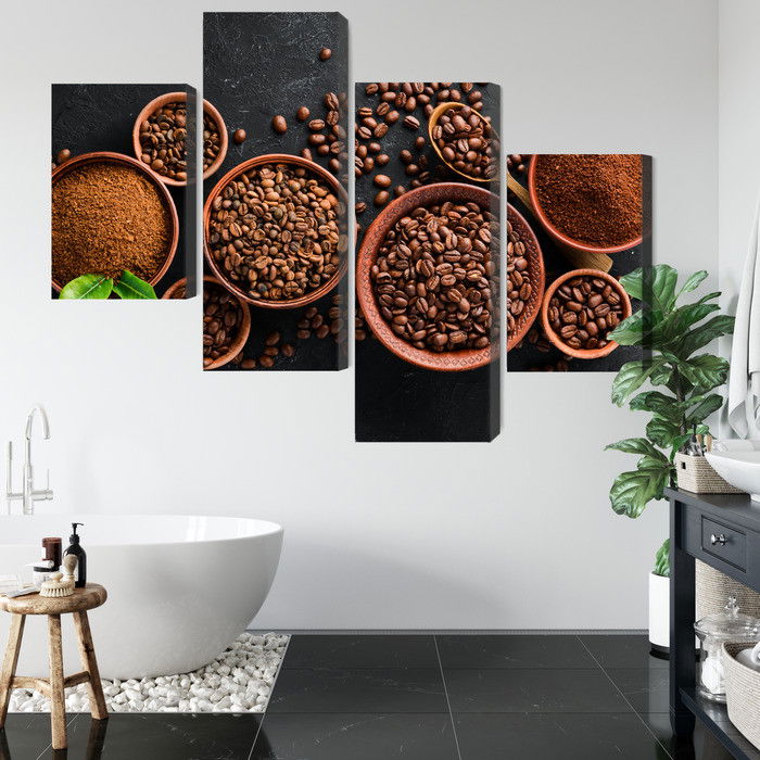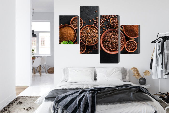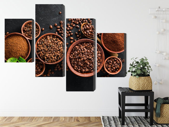 Motivet Ground coffee and beans återges med hög färgprecision och detaljrikedom tack vare HP Latex-teknologi. Trycket sker med vattenbaserade, luktfria och GREENGUARD Gold-certifierade bläck som ger en upplösning på upp till 300 DPI. Färgerna är UV-beständiga och behåller sin styrka även i ljusa rum, vilket gör tavlan lämplig för både hem- och offentliga miljöer.