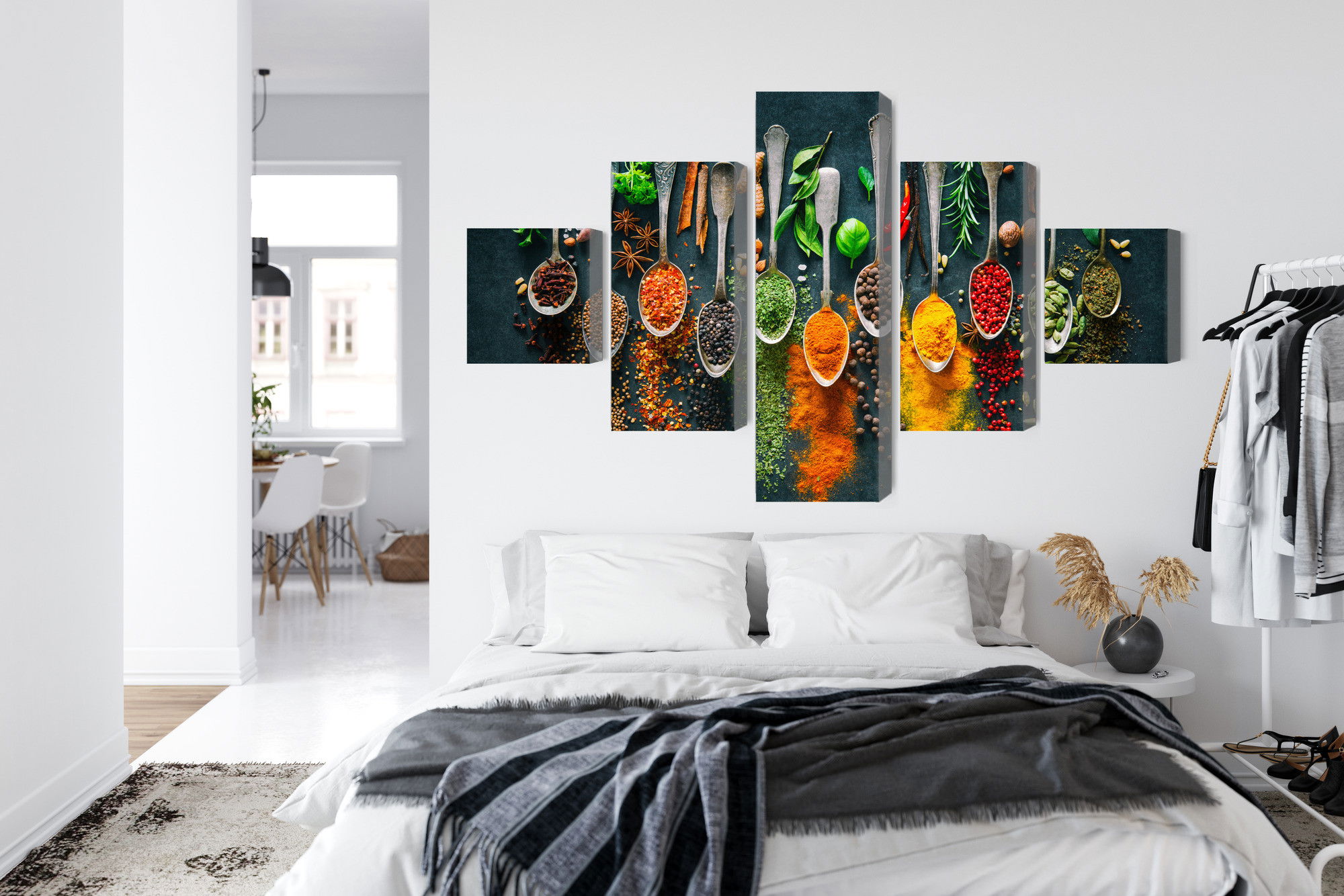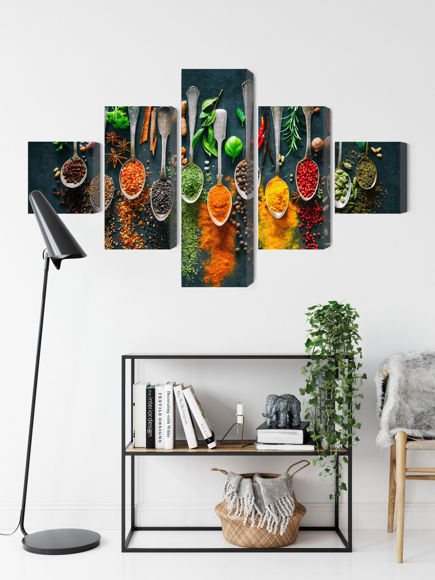Ljuddämpande tavla – Herbs and spices on spoons för lugnare rum och mjukare akustik