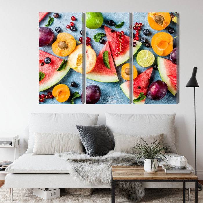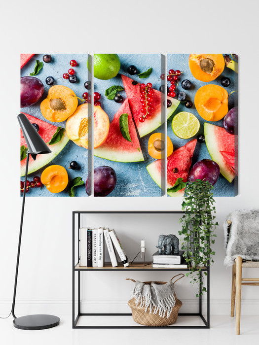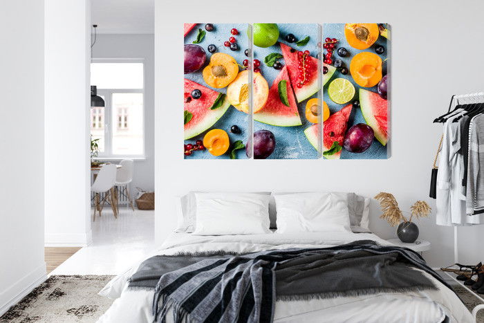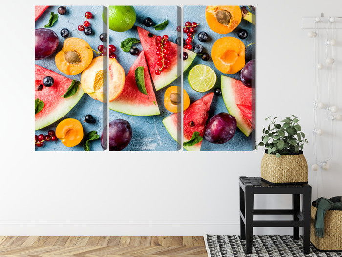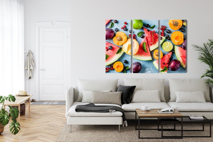 Motivet Holiday fruit återges med hög färgprecision och detaljrikedom tack vare HP Latex-teknologi. Trycket sker med vattenbaserade, luktfria och GREENGUARD Gold-certifierade bläck som ger en upplösning på upp till 300 DPI. Färgerna är UV-beständiga och behåller sin styrka även i ljusa rum, vilket gör tavlan lämplig för både hem- och offentliga miljöer.
