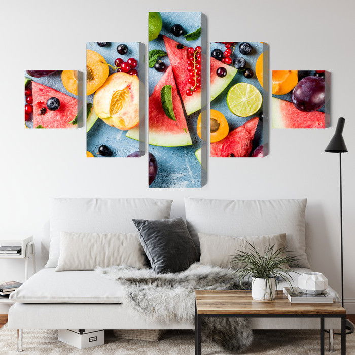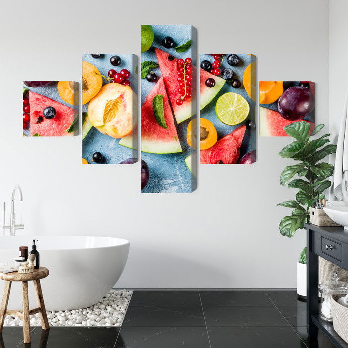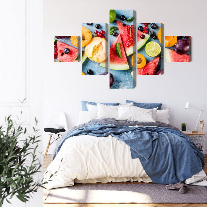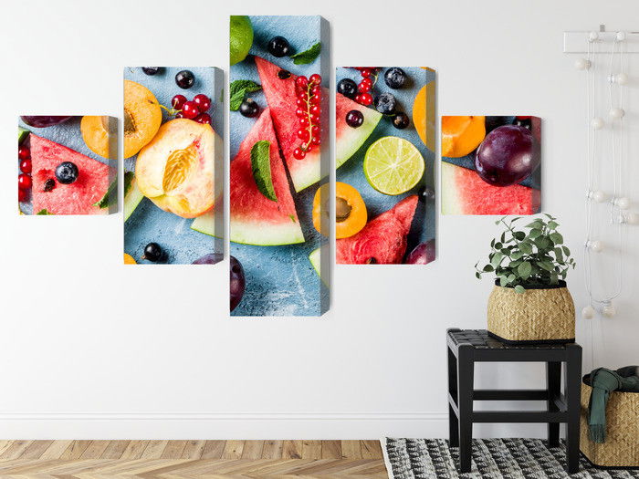 Motivet Holiday fruit återges med hög färgprecision och detaljrikedom tack vare HP Latex-teknologi. Trycket sker med vattenbaserade, luktfria och GREENGUARD Gold-certifierade bläck som ger en upplösning på upp till 300 DPI. Färgerna är UV-beständiga och behåller sin styrka även i ljusa rum, vilket gör tavlan lämplig för både hem- och offentliga miljöer.