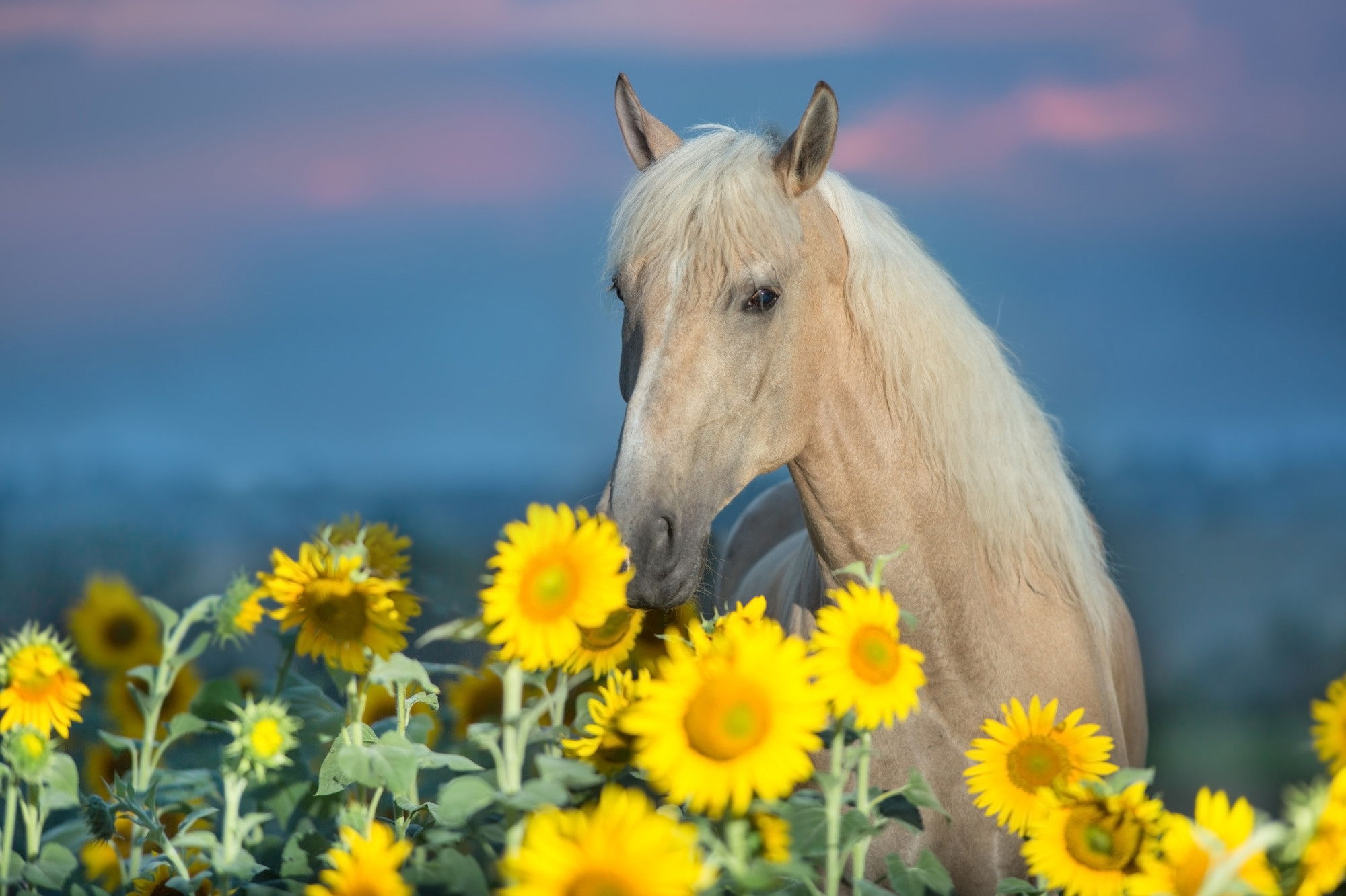 Ljuddämpande tavla – Horse and sunflowers för lugnare rum och mjukare akustik