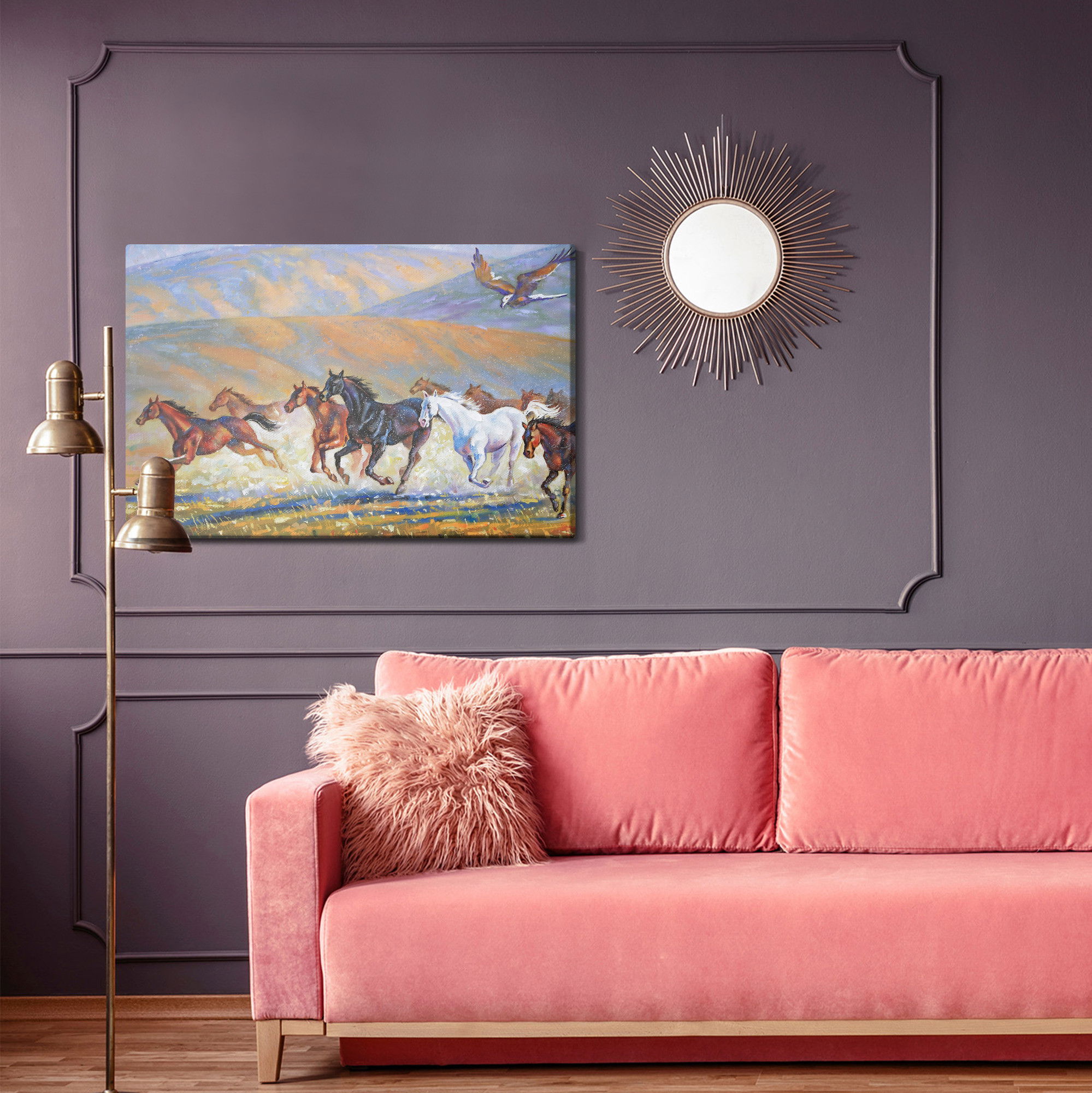 Ljuddämpande tavla – Horses galloping för lugnare rum och mjukare akustik