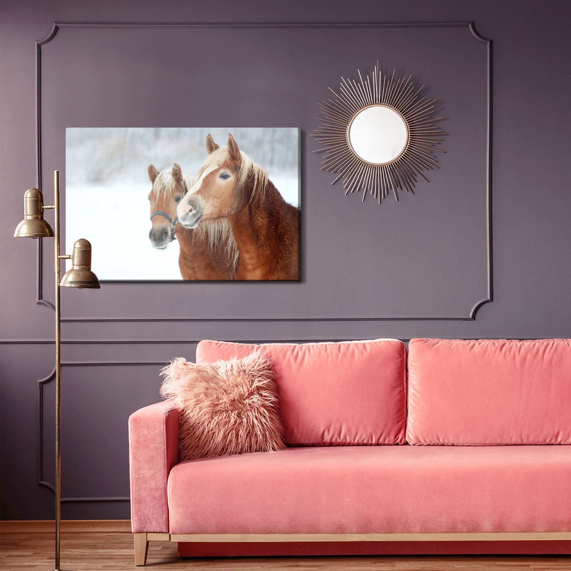 Ljuddämpande tavla – Horses in the snow för lugnare rum och mjukare akustik
