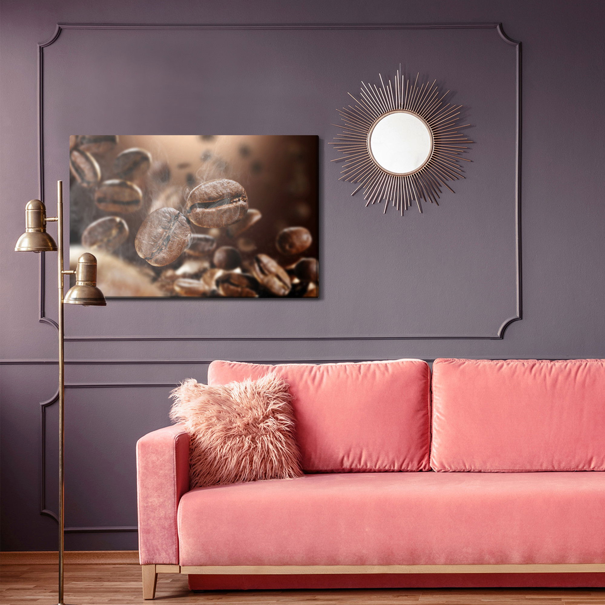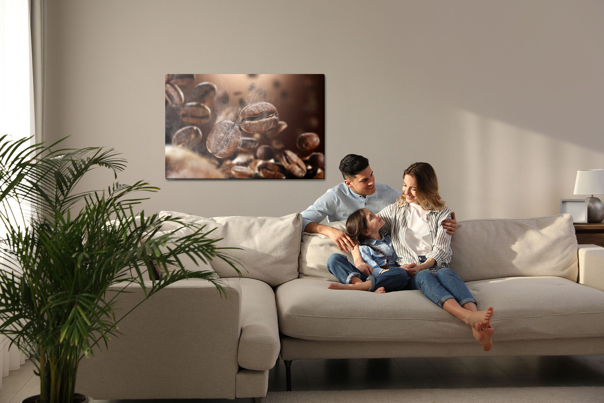 Motivet Hot coffee beans återges med hög färgprecision och detaljrikedom tack vare HP Latex-teknologi. Trycket sker med vattenbaserade, luktfria och GREENGUARD Gold-certifierade bläck som ger en upplösning på upp till 300 DPI. Färgerna är UV-beständiga och behåller sin styrka även i ljusa rum, vilket gör tavlan lämplig för både hem- och offentliga miljöer.