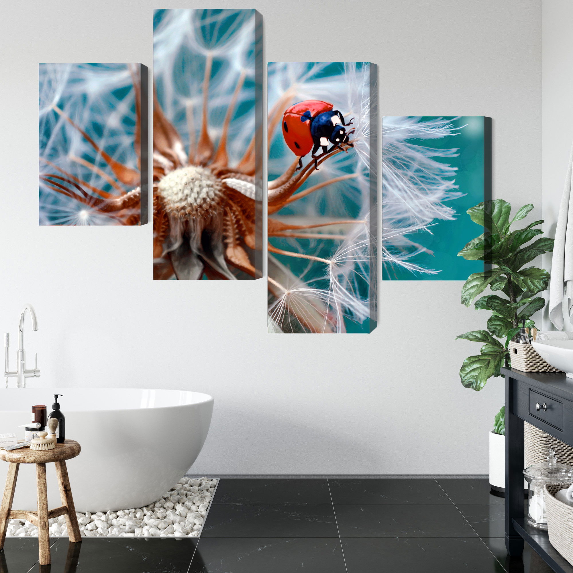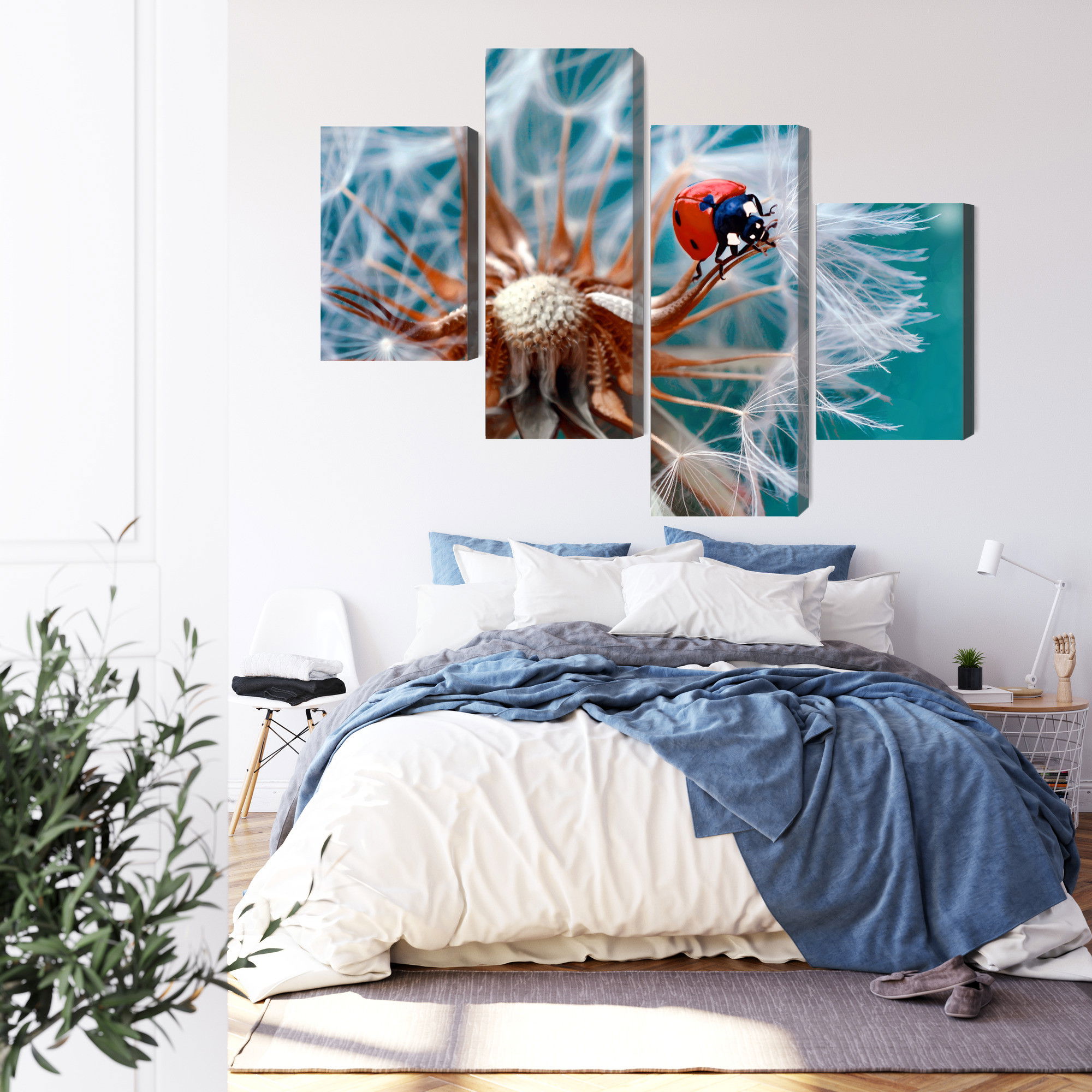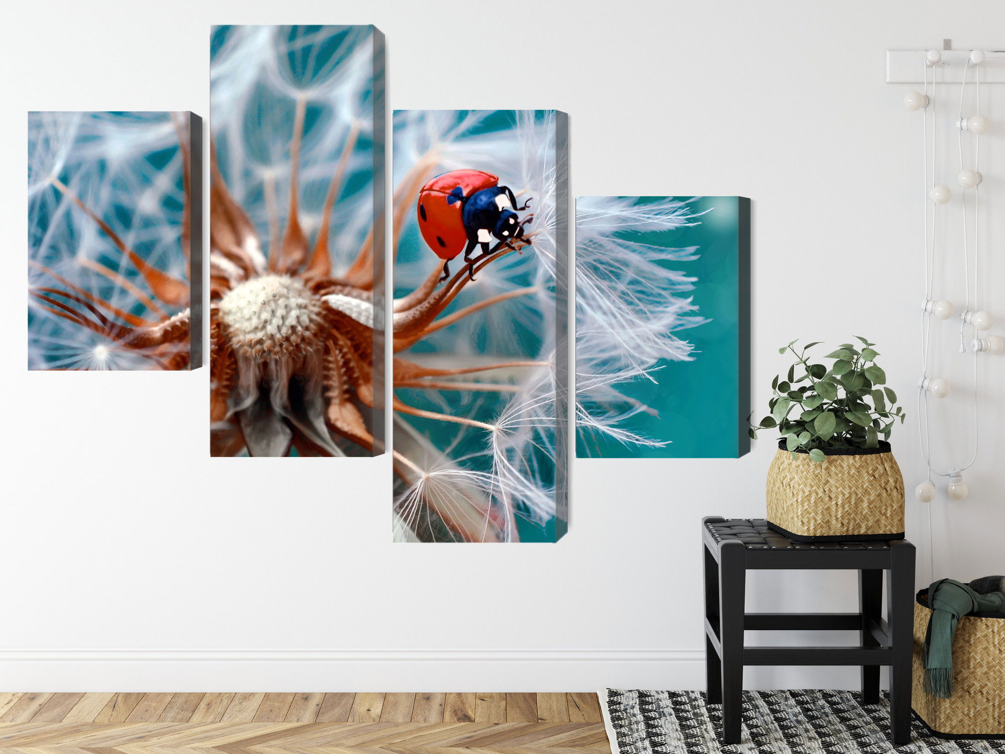 Ljuddämpande tavla – Ladybug on a dandelion för lugnare rum och mjukare akustik
