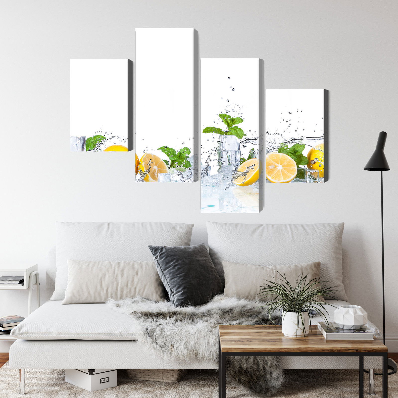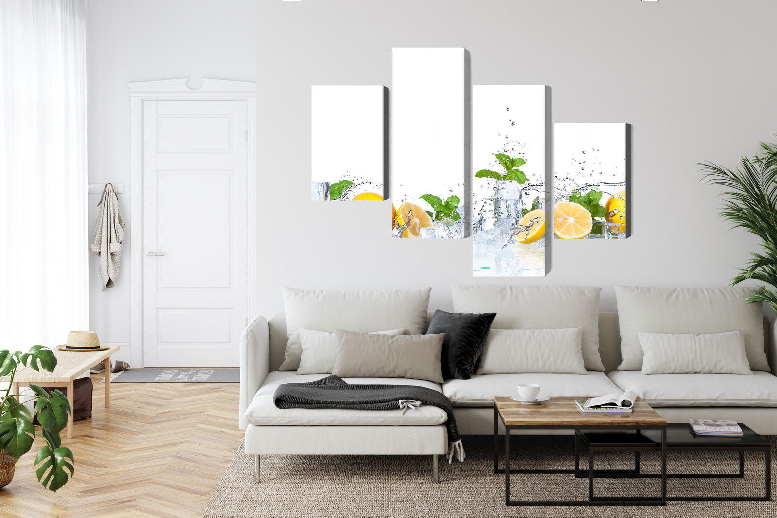 Motivet Mint leaves with lemons återges med hög färgprecision och detaljrikedom tack vare HP Latex-teknologi. Trycket sker med vattenbaserade, luktfria och GREENGUARD Gold-certifierade bläck som ger en upplösning på upp till 300 DPI. Färgerna är UV-beständiga och behåller sin styrka även i ljusa rum, vilket gör tavlan lämplig för både hem- och offentliga miljöer.