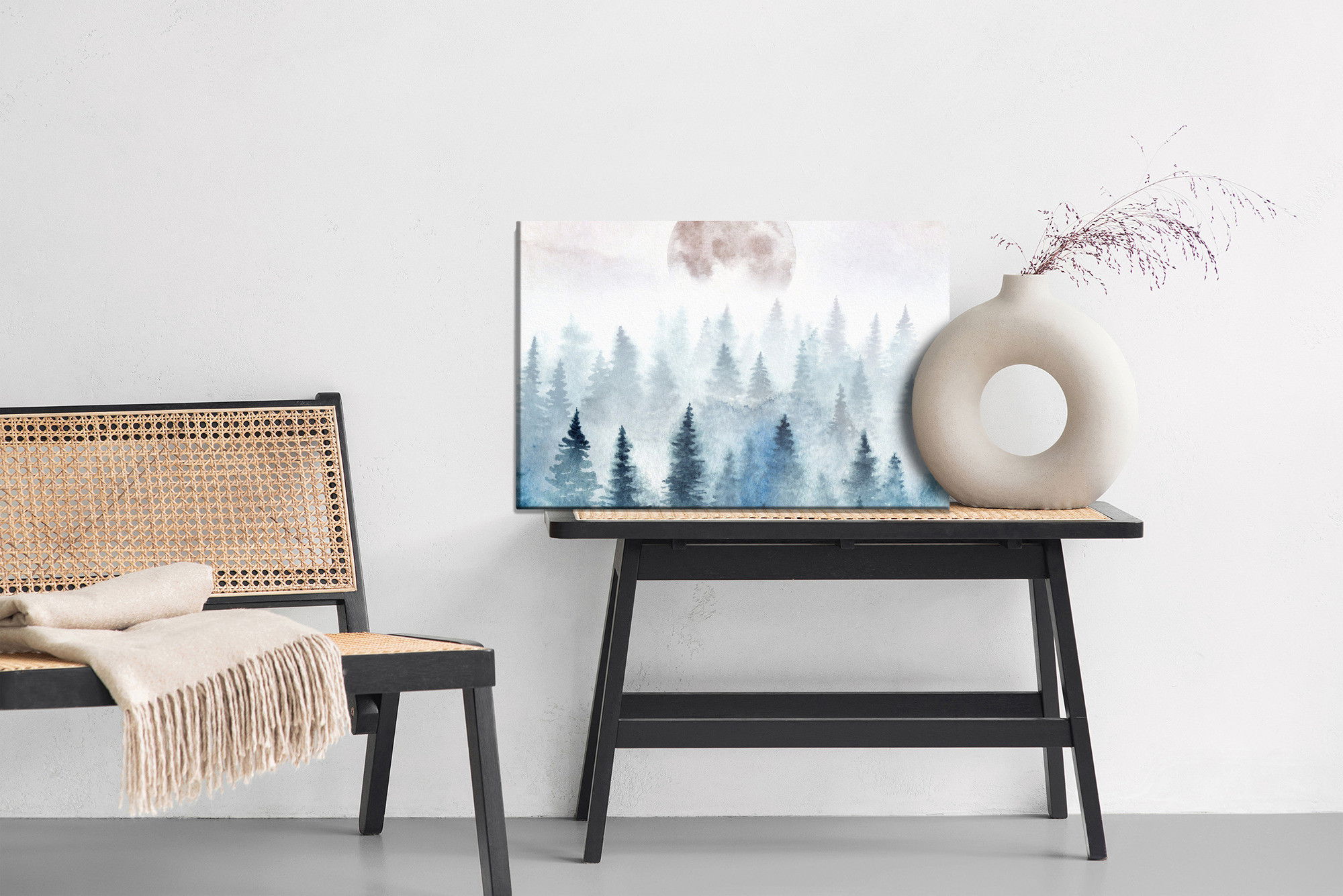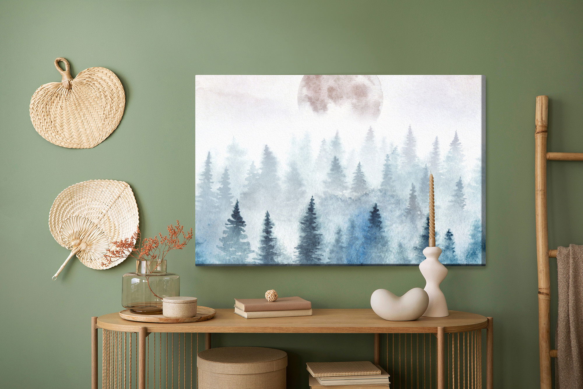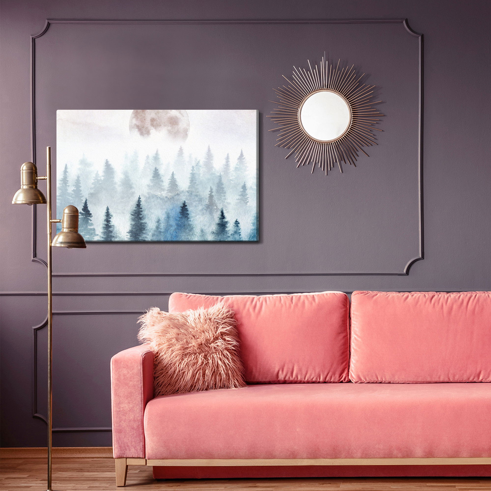 Ljuddämpande tavla – Moon above misty trees för lugnare rum och mjukare akustik