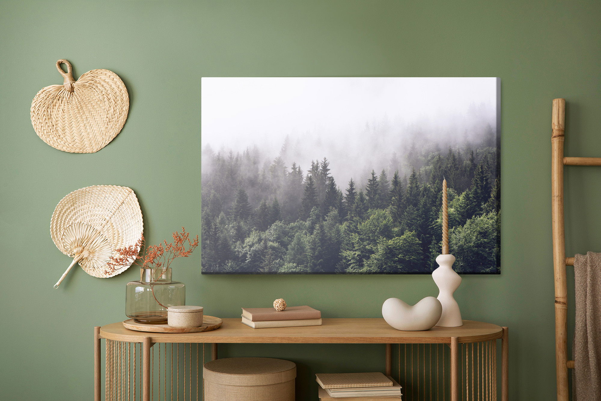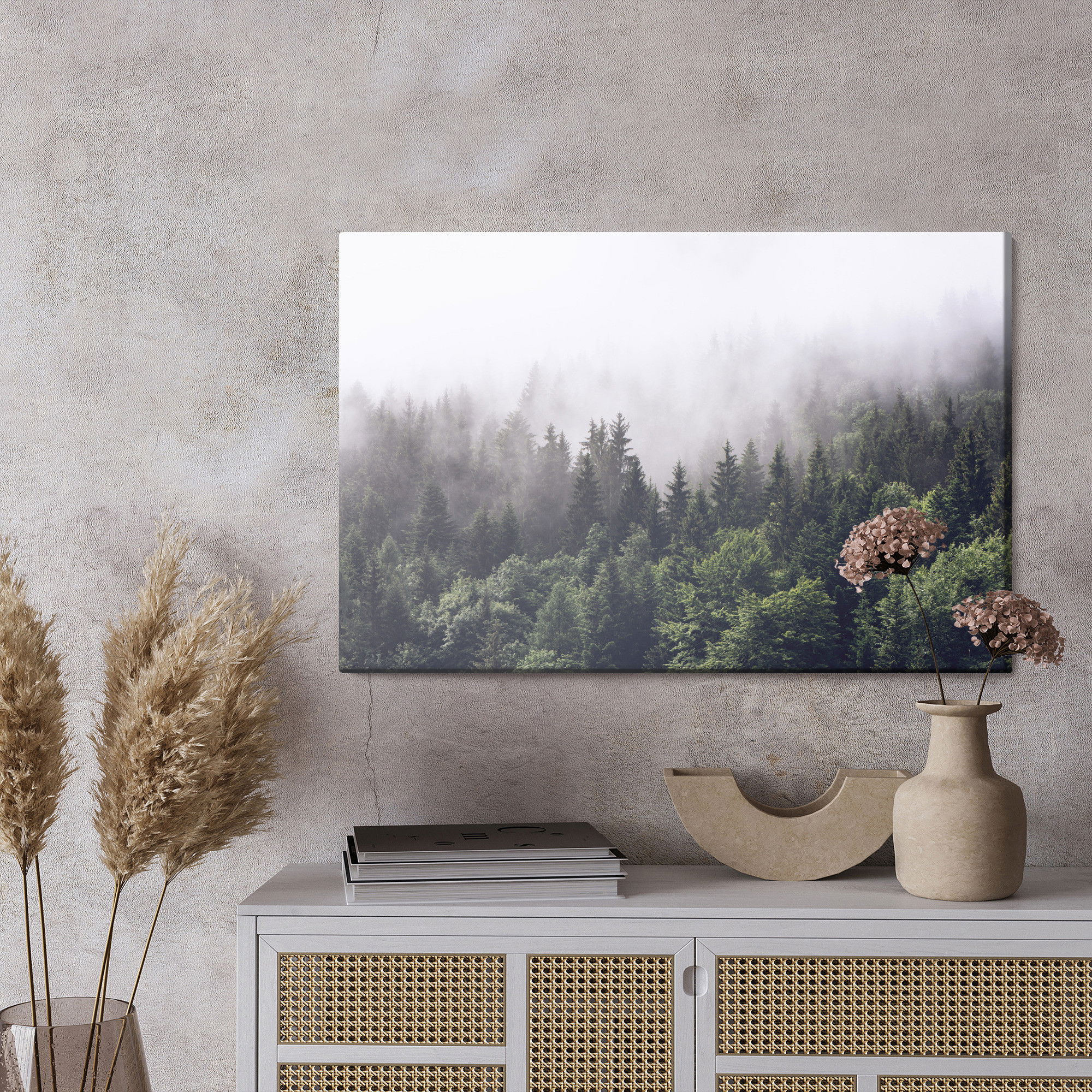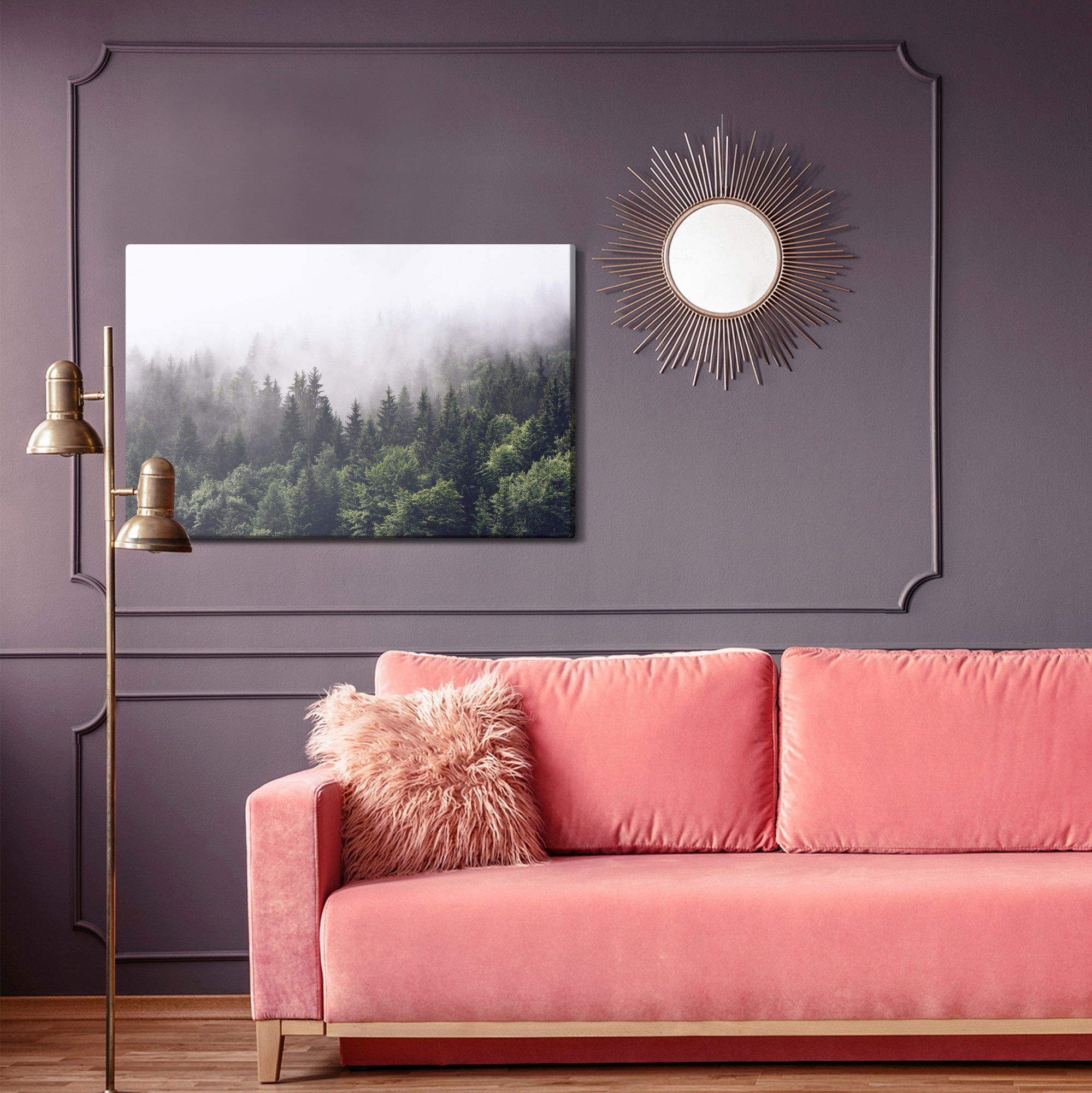 Ljuddämpande tavla – Moon over misty trees för lugnare rum och mjukare akustik